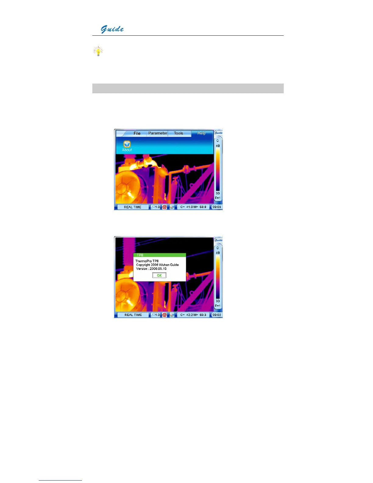 • Click the icon Guide at the right top corner of the screen with the touch pen to bring up the