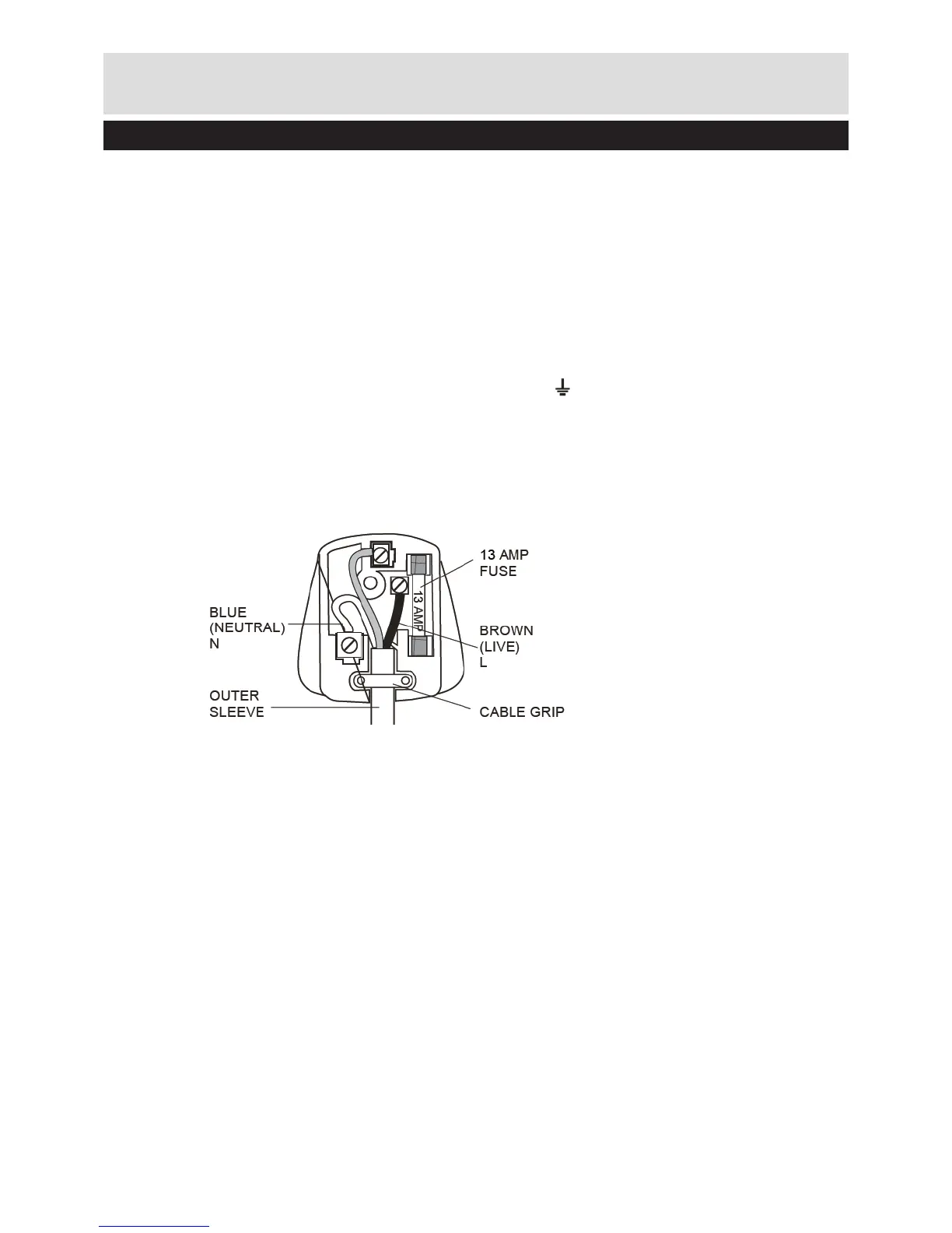 If a 13 AMP (BS 1363/A) Plug is used, a 13 AMP Fuse must be fitted, or if any other type