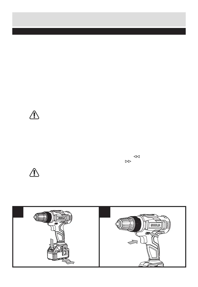 For drilling and screw driving use forward rotation marked “ ” (rotation control (b)