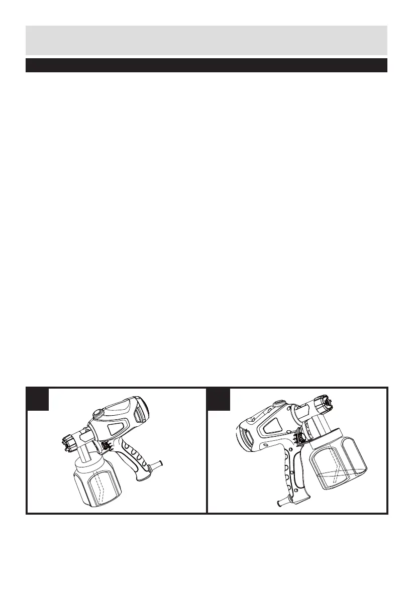 1) Remove the tank by unscrewing it in clockwise direction from the spray gun.