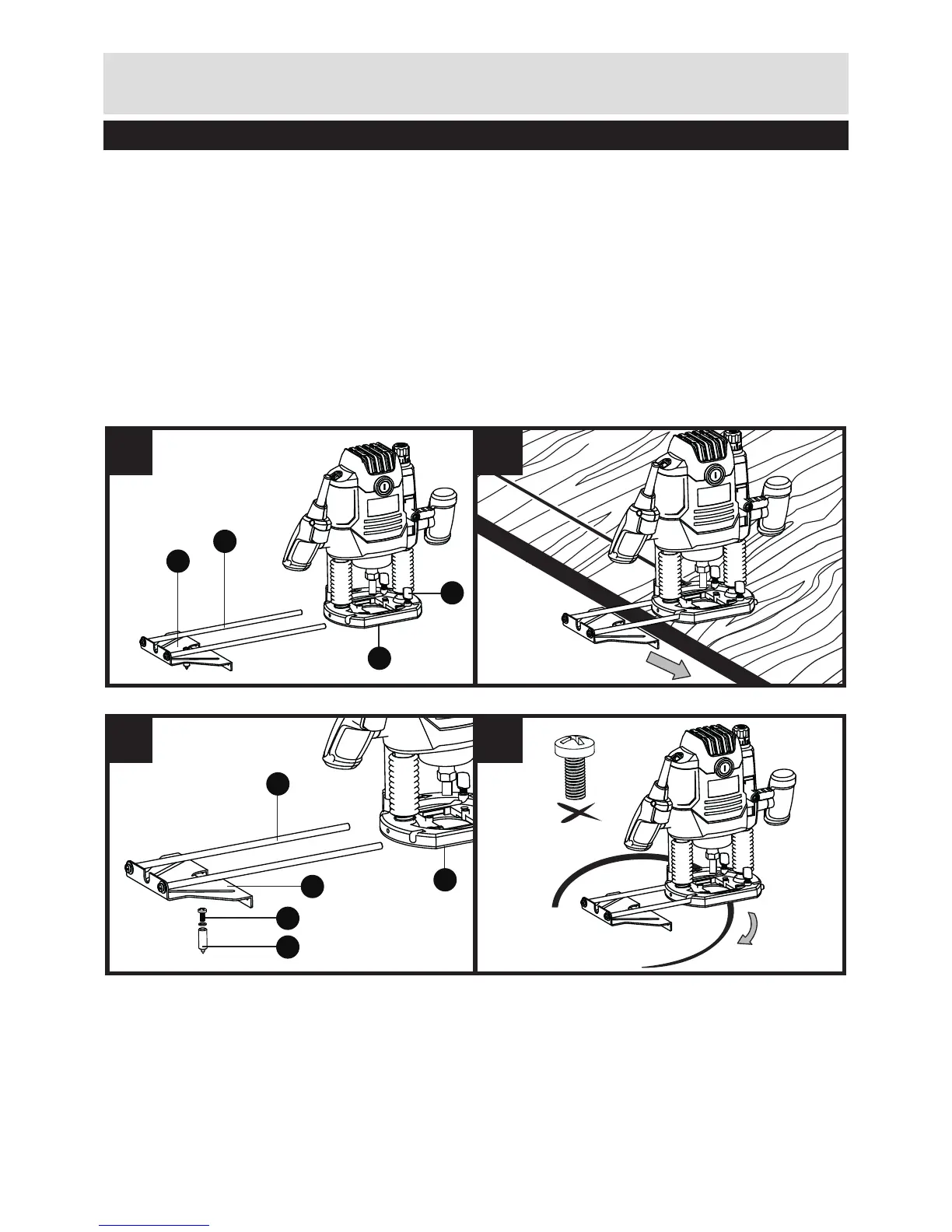 • Puncture center pin into marked centre of the circular arc and guide router with