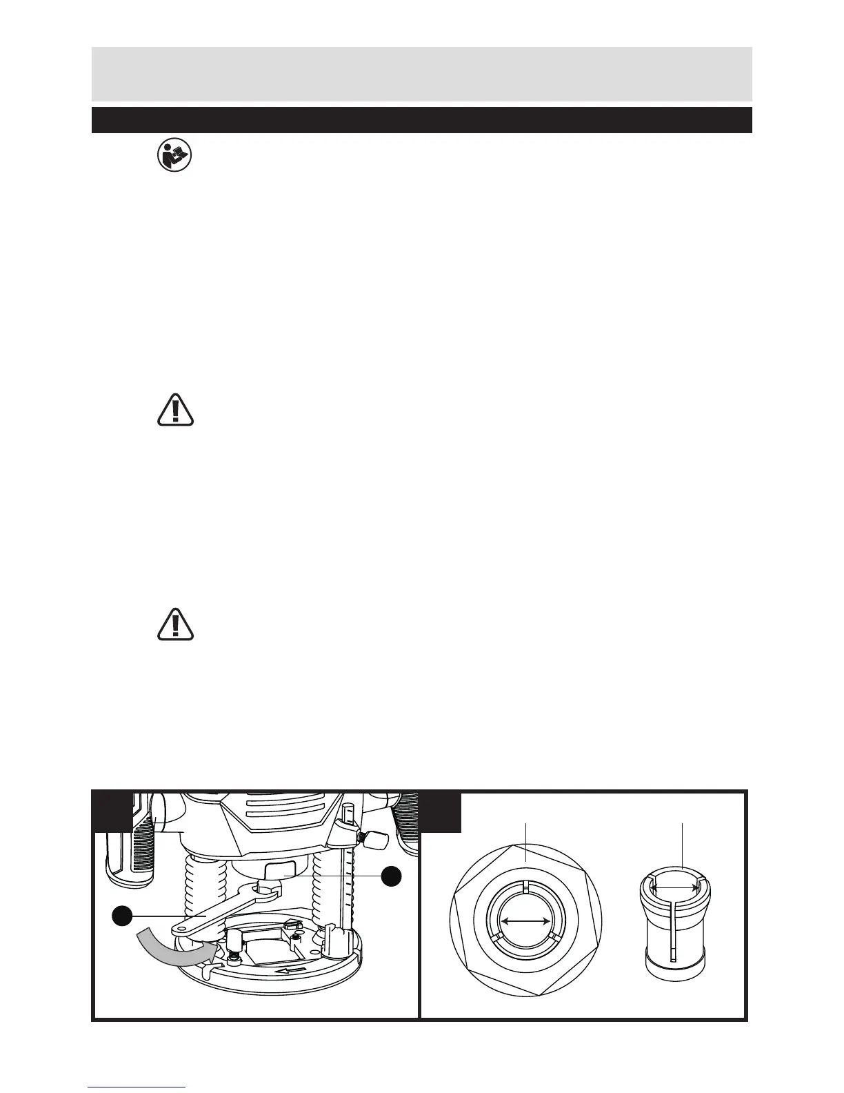 WARNING: Do not tighten the tightening nut of the collet without a router bit
