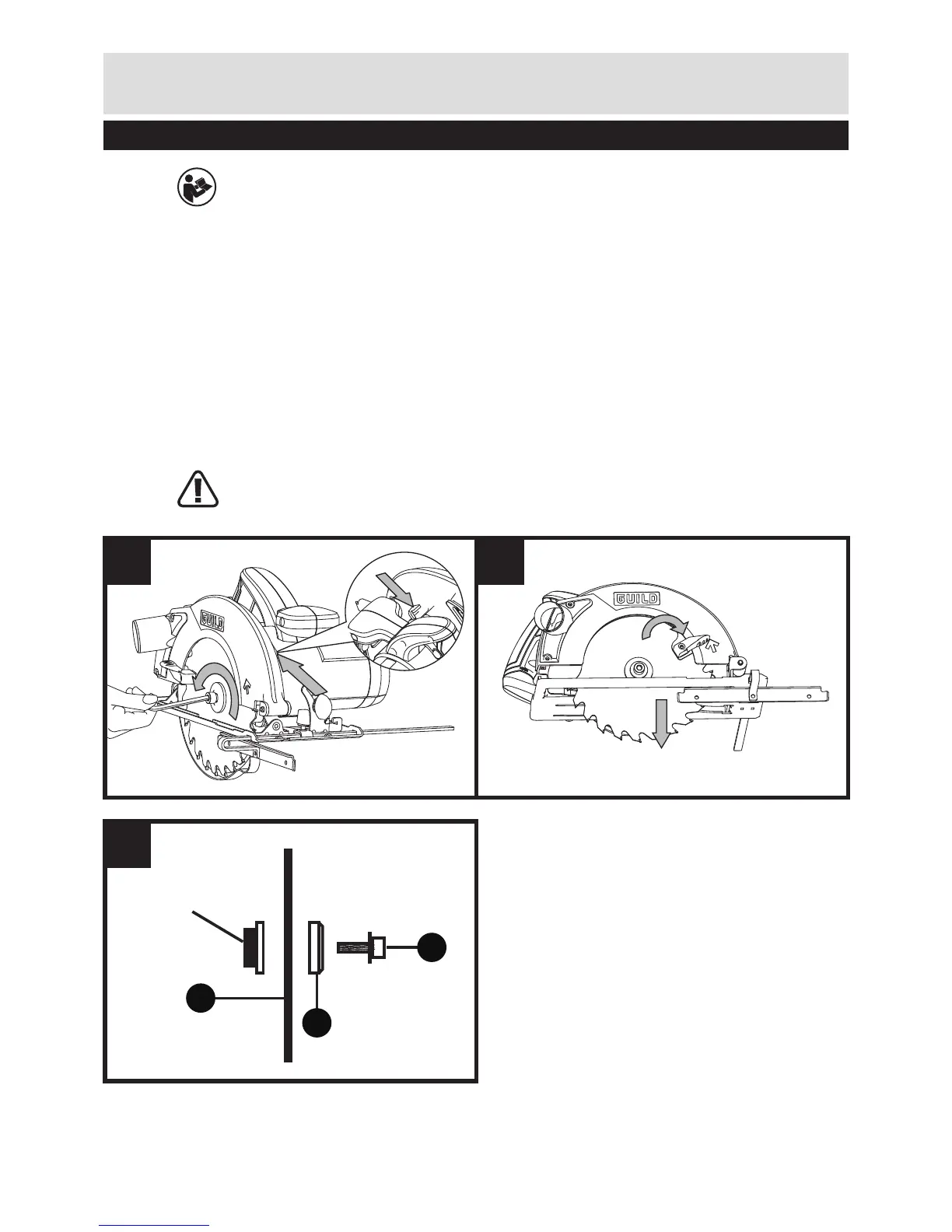 as the fixed guard arrow. Place the outer flange, the blade bolt onto the blade bore. Press