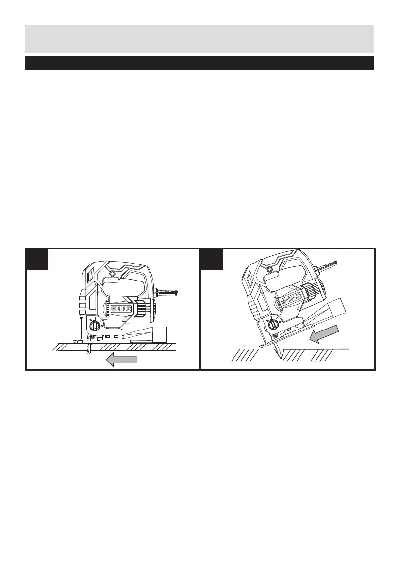firmly against the workpiece and plunge the saw blade slowly into the workpiece.
