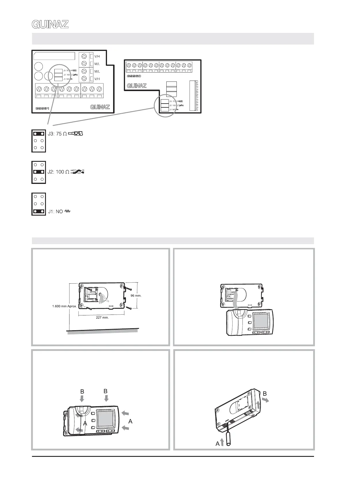 Configuration for video installations with 75 ohms coaxial cable and the monitor is last one on the