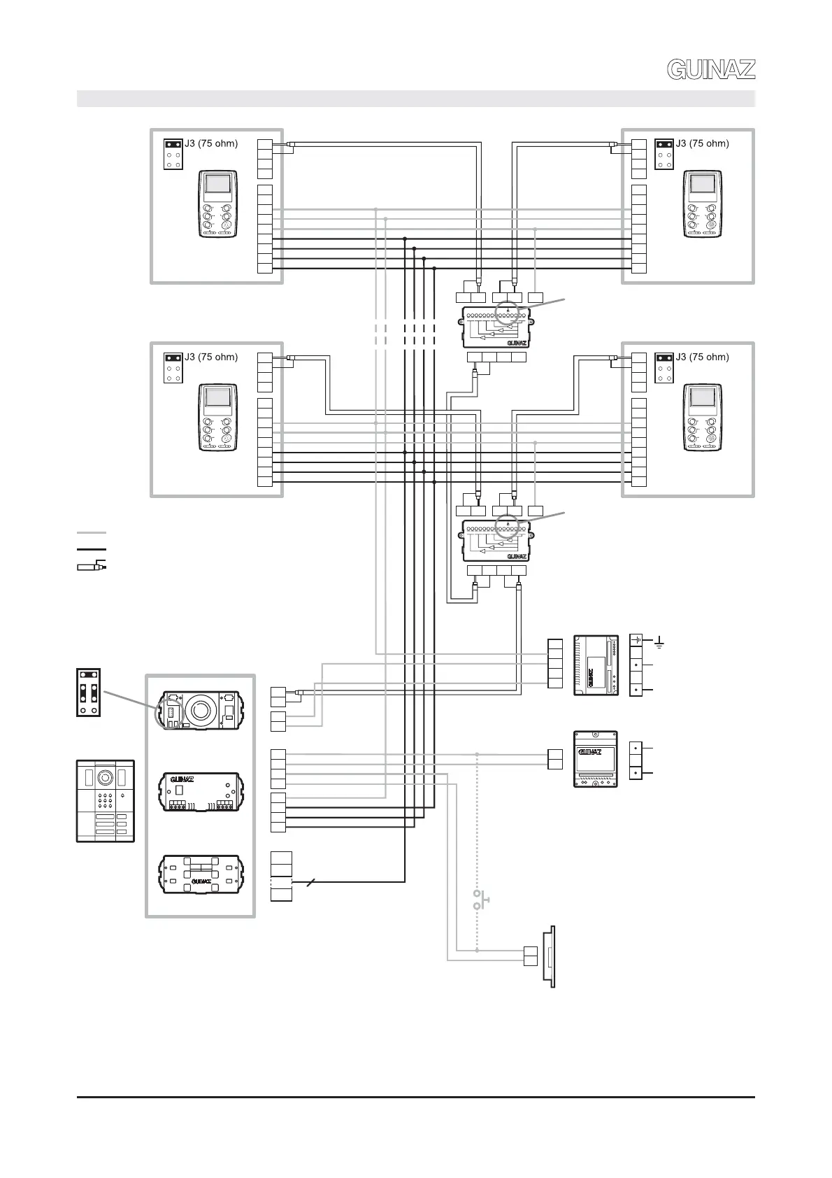 NOTA: Representada instalación manos libres con monitores blanco y negro, y cable coaxial para la señal de vídeo. Si para la transmisión