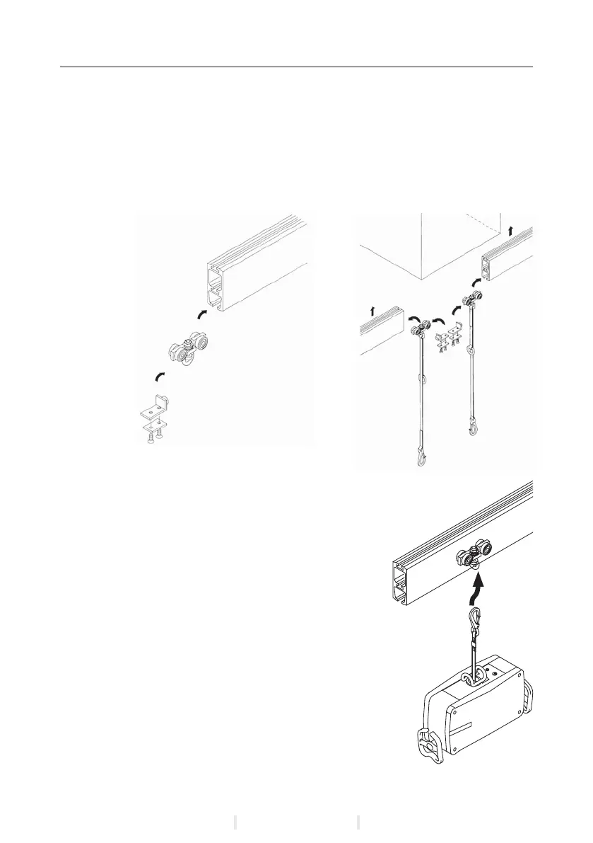 For correct installation of travelling trolleys/Swing-Kit in the rail system, please