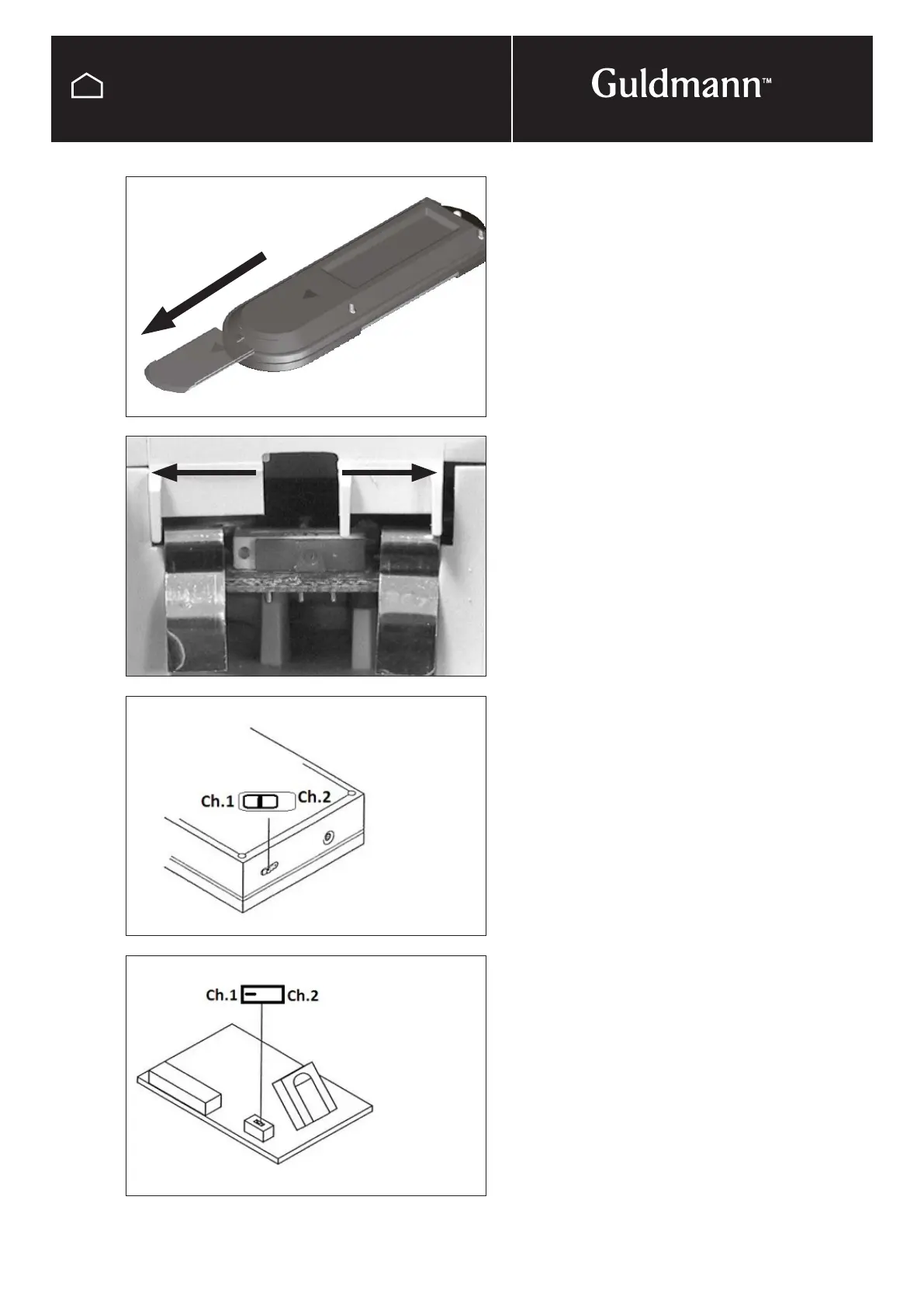 to Ch.1 from Guldmann. To change channel, slide off the