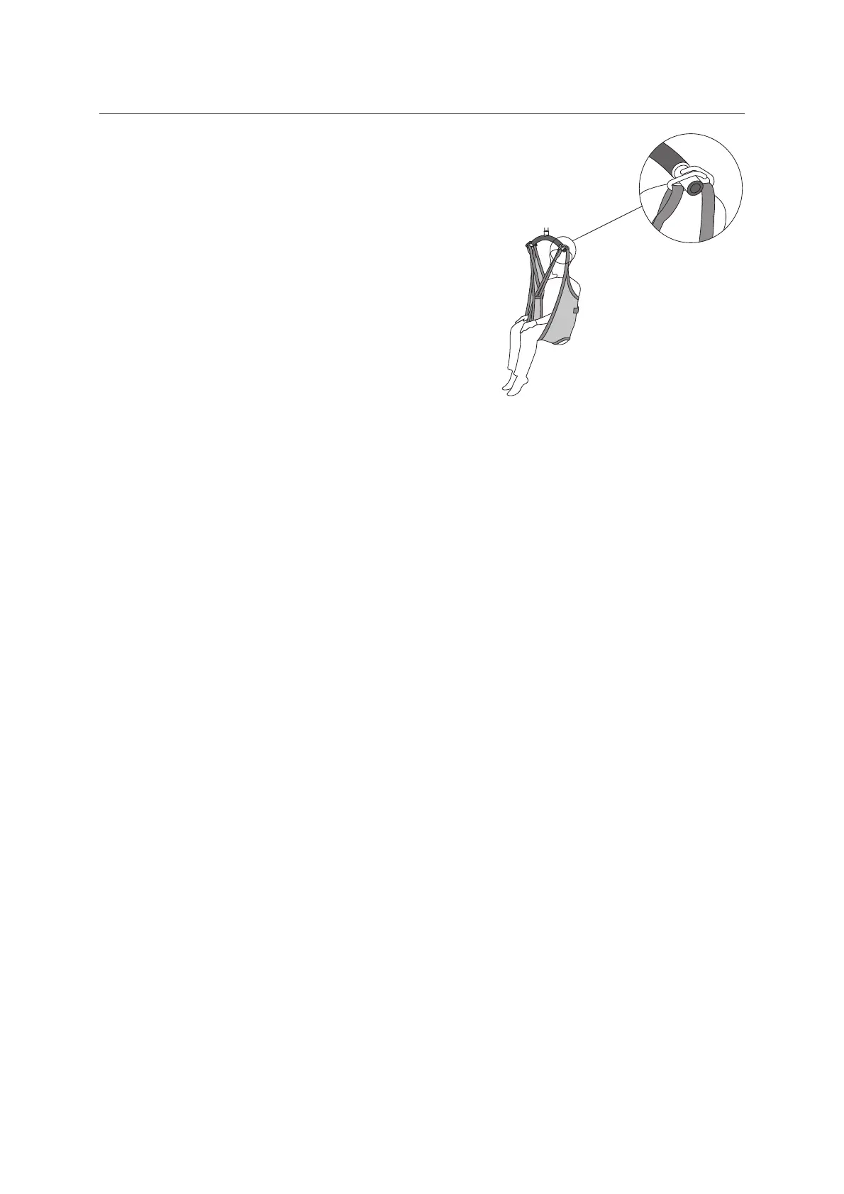 The centre band of the lifting sling should follow the user’s spine. As for the