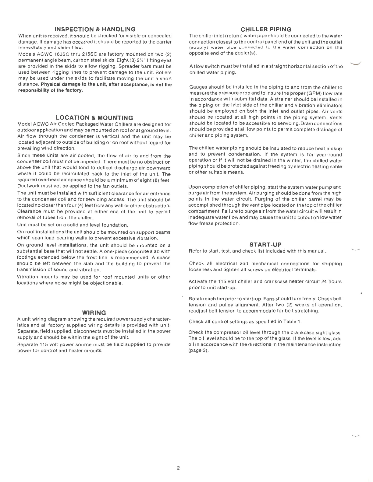 Gulf+Western ACWC-SC - Location & Mounting; Wiring; Chiller Piping; Start-Up