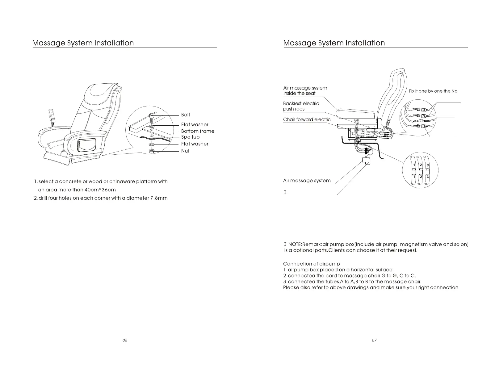 3.Fasten chair frame to platform using hardware provided, as per illustration above.