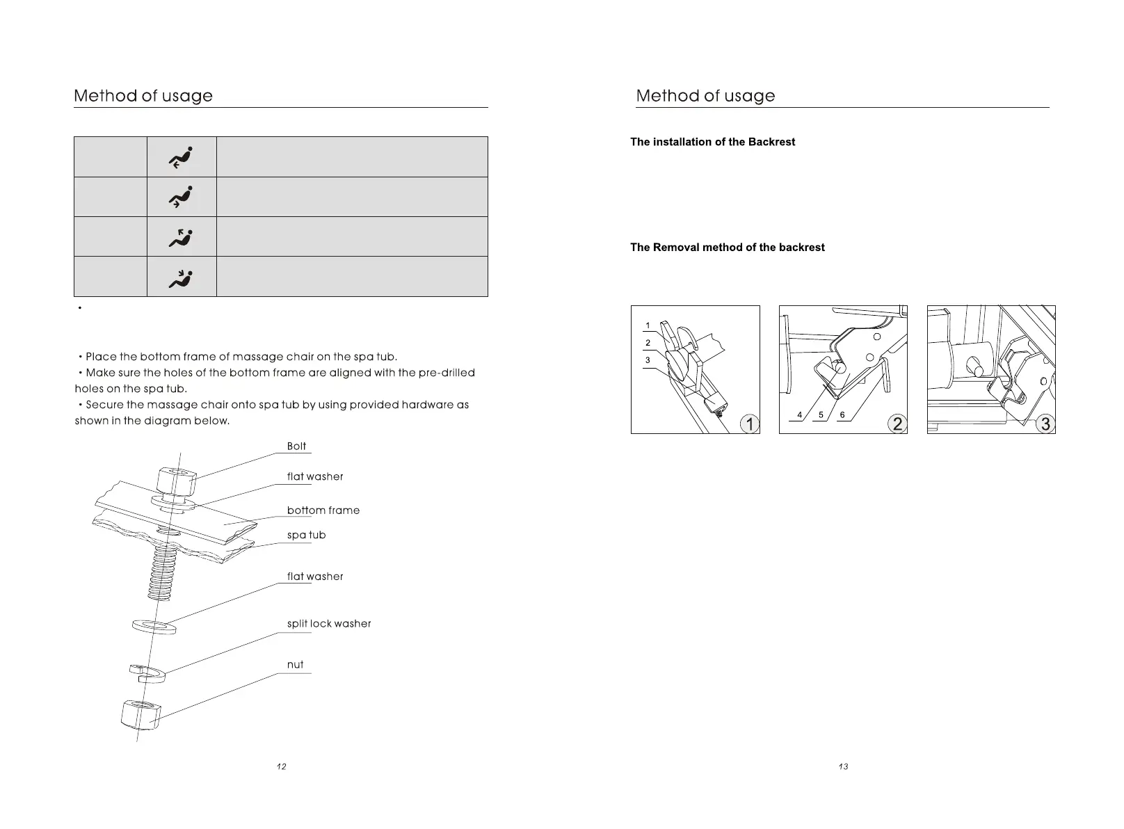 2.Lay back backrest and align electric cylinder bolt with backrest electric