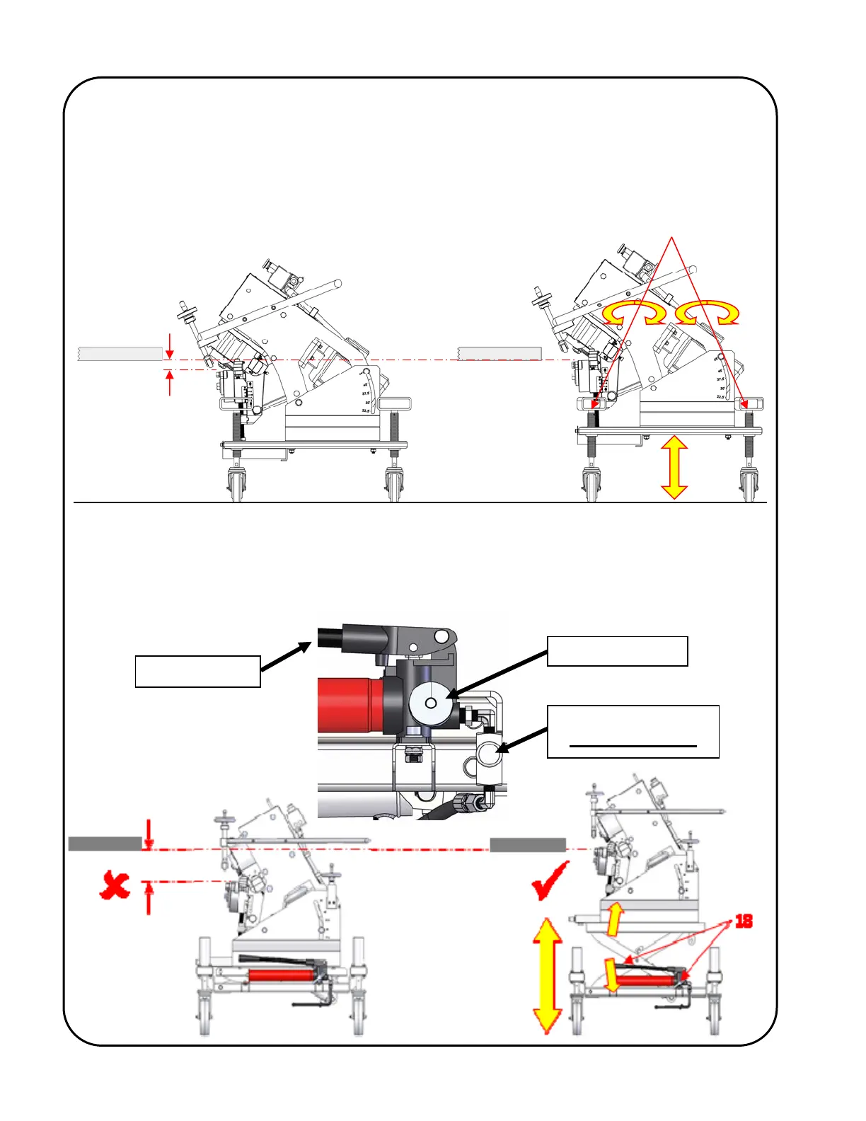of the plate to be bevelled). Take care to adjust all four casters so that the machine is level.