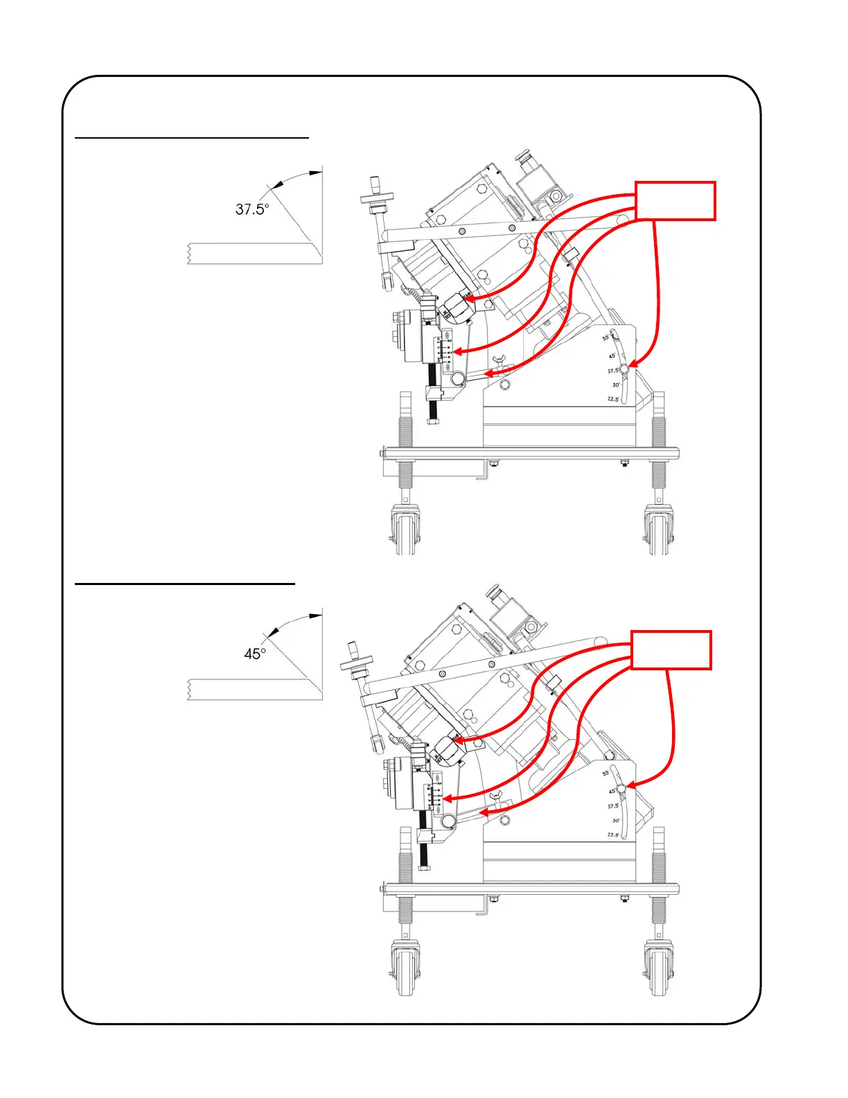 GULLCO KBM-18 - 37.5º Bevel Arrangement; 45º Bevel Arrangement