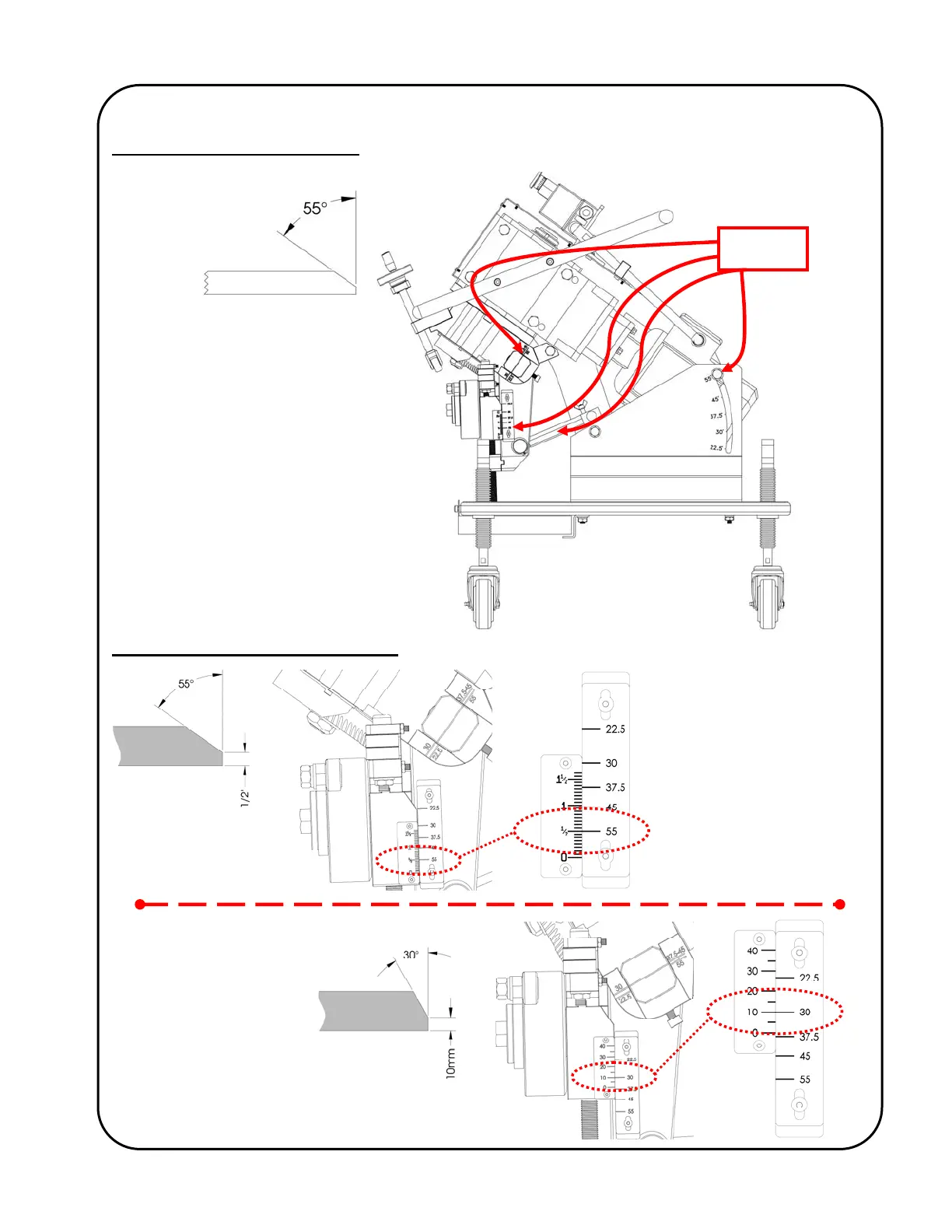 GULLCO KBM-18 - 55º Bevel Arrangement; Root Face Scale Examples