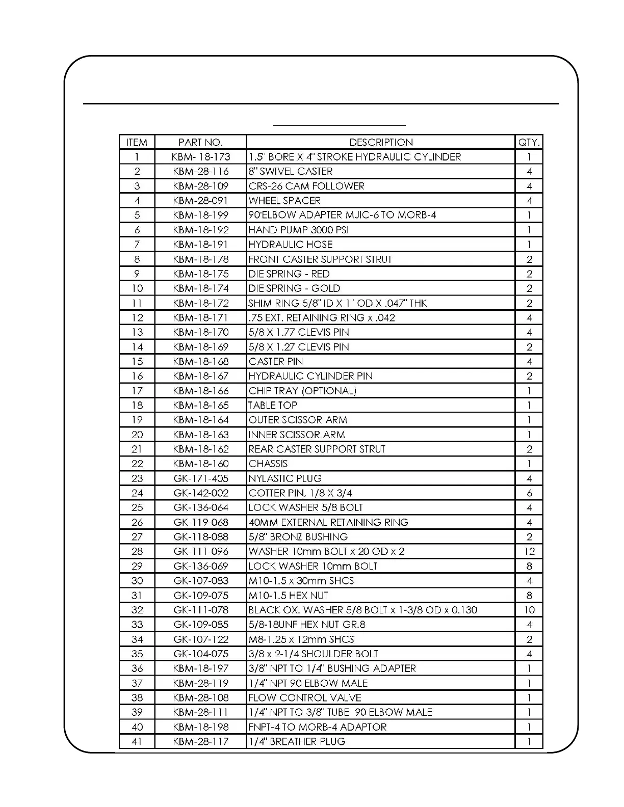 OPTIONAL HYDRAULIC UNDERCARRIAGE ASSEMBLY BREAKDOWN