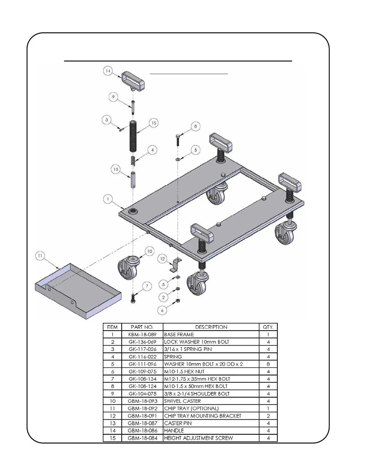 GULLCO KBM-18 - Optional Undercarriage Assembly Breakdown