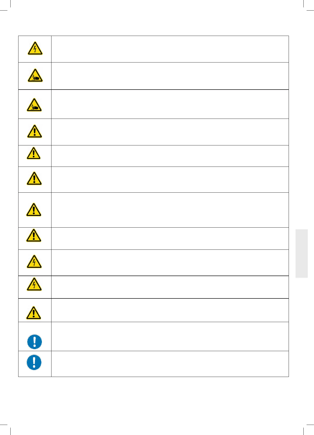 Danger: This symbol advises you of a possible risk of body parts being trapped or pinched in