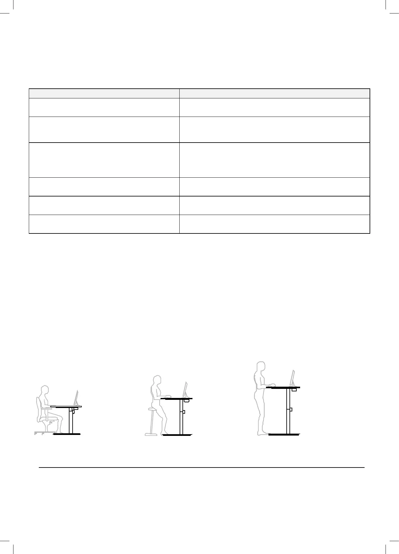 the individual user. The working height, both in the sitting position and standing, should be at around