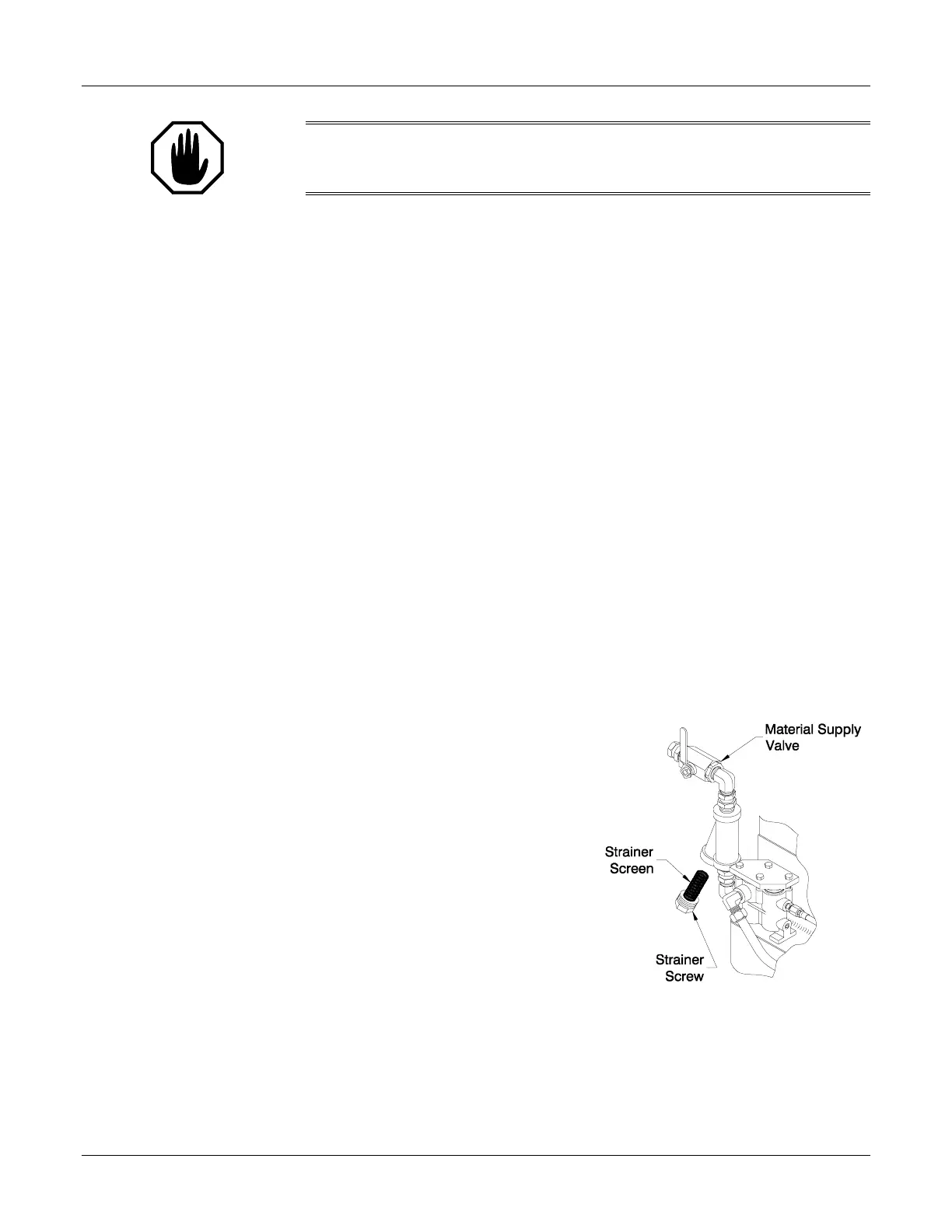Open the material supply valve; insure there are no leaks and wipe the equipment