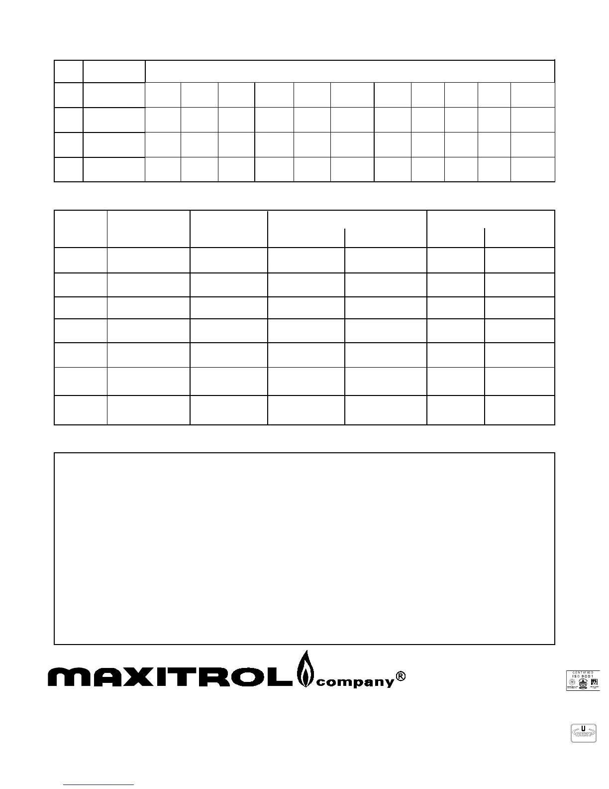 NOTE: Minimum main burner regulation capacity for all models (except “N”) is 150 Btu/h (.0042 m
