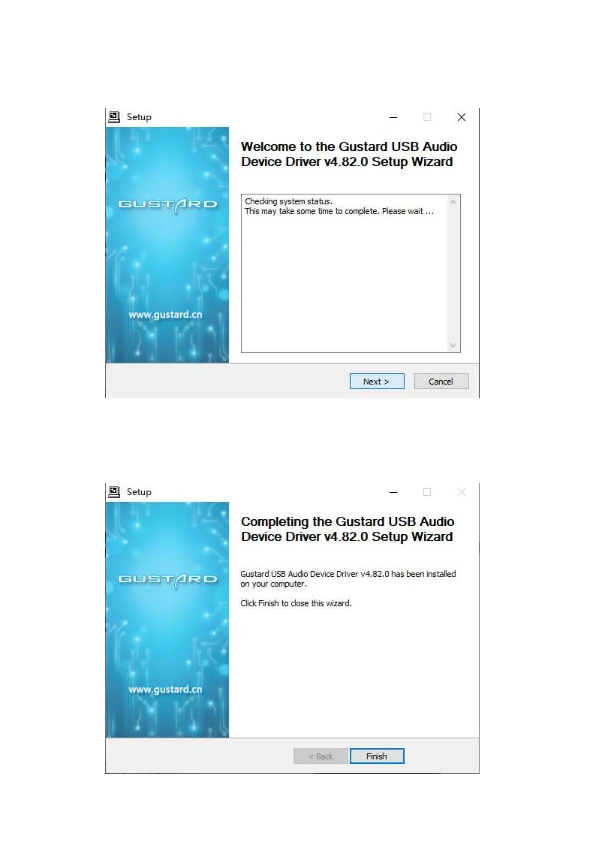 6. The figure below shows the screen for successfully installing the driver. Click