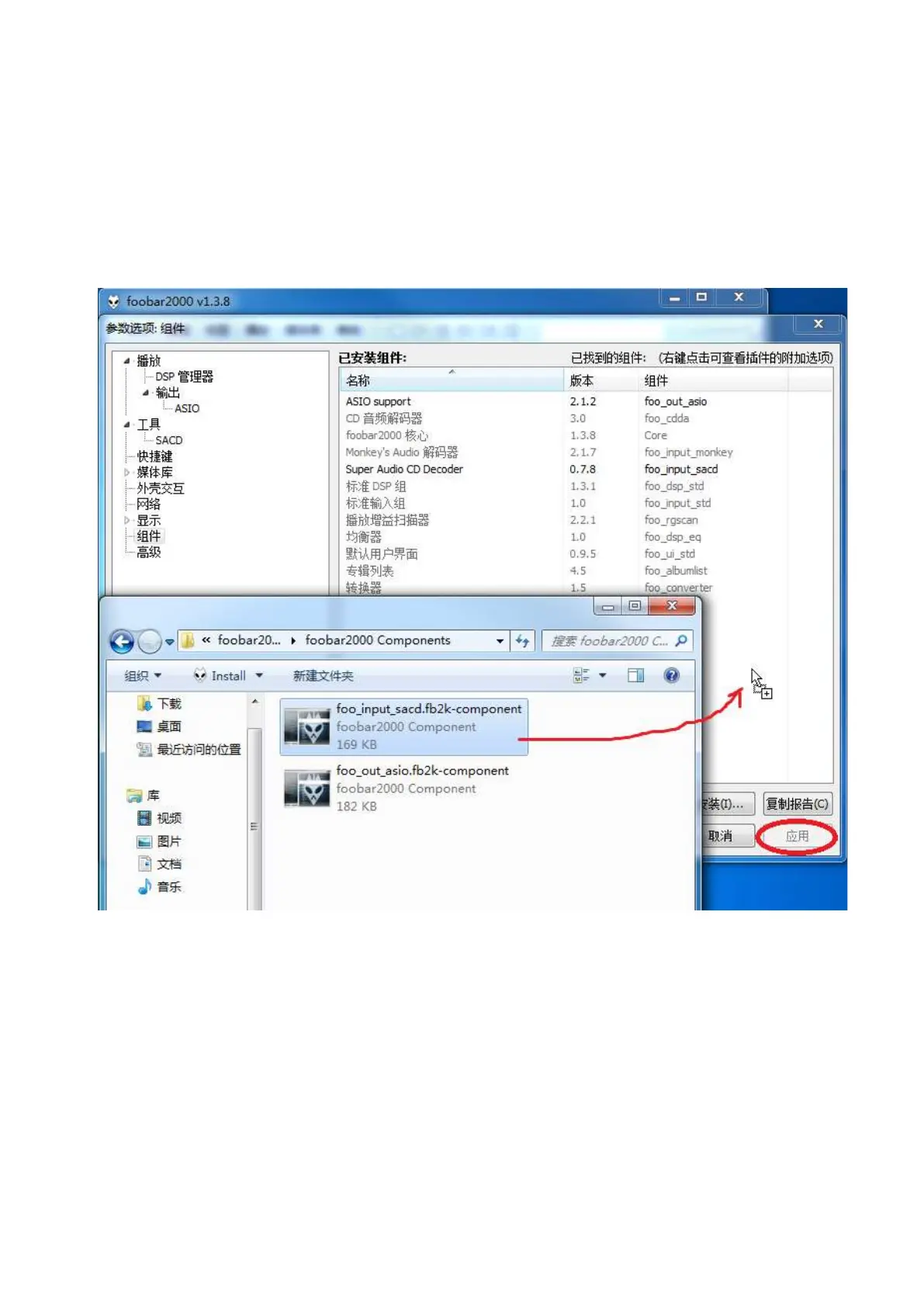 foo_input_sacd.fb2k-component file from the foobar2000_DSD_0.7.X folder to the