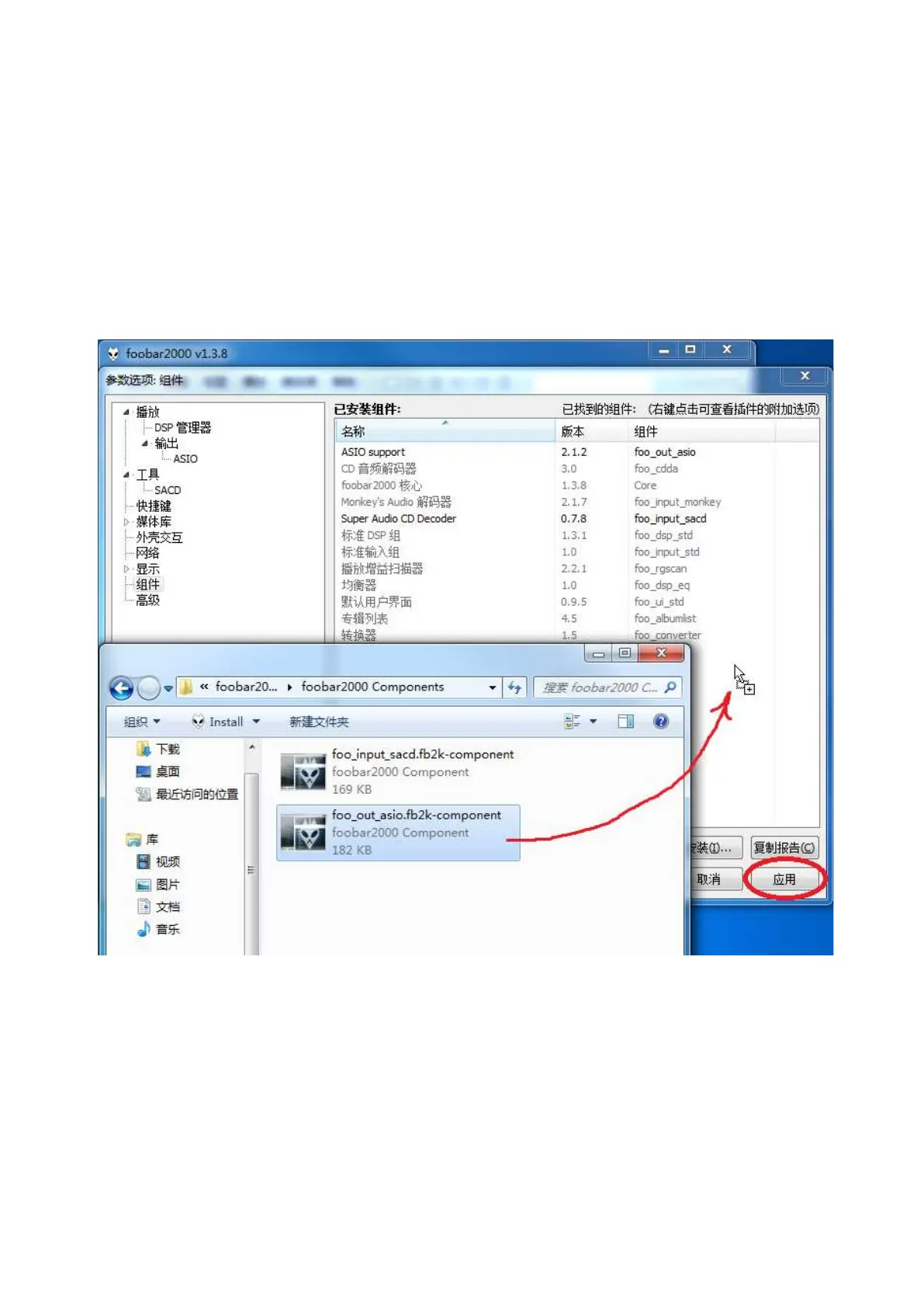 component file from the foobar2000_DSD_0.7.X folder to the space in the box to