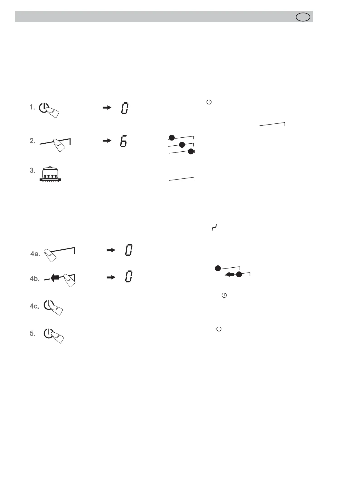 (Kochstufe 0) und nachfolgend keine Taste/ Sensorfeld mehr