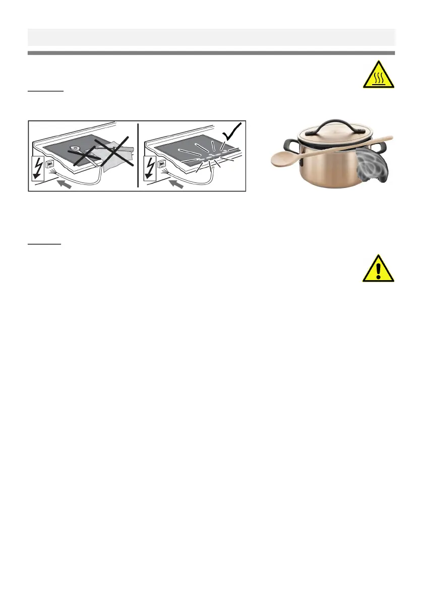 Keine metallischen Gegenstände oder Filter auf eingeschaltetem Kochfeld ablegen !
