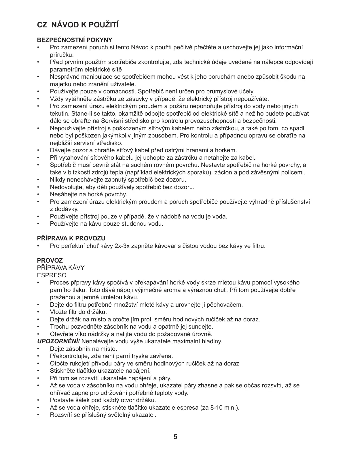 • Používejte na kávu pouze studenou vodu.