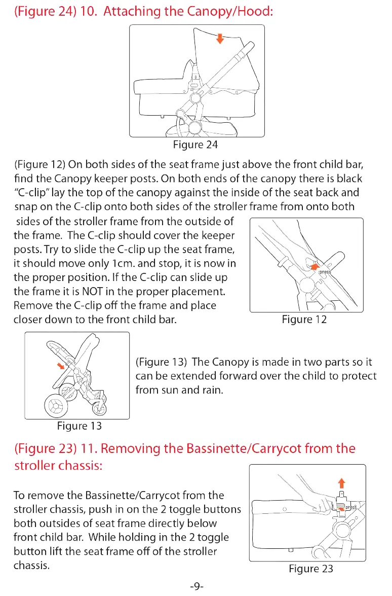 Guzzie+Guss G+G 042 - Attaching the Canopy;Hood; Removing the Basinnette;Carrycot from the Stroller Chassis