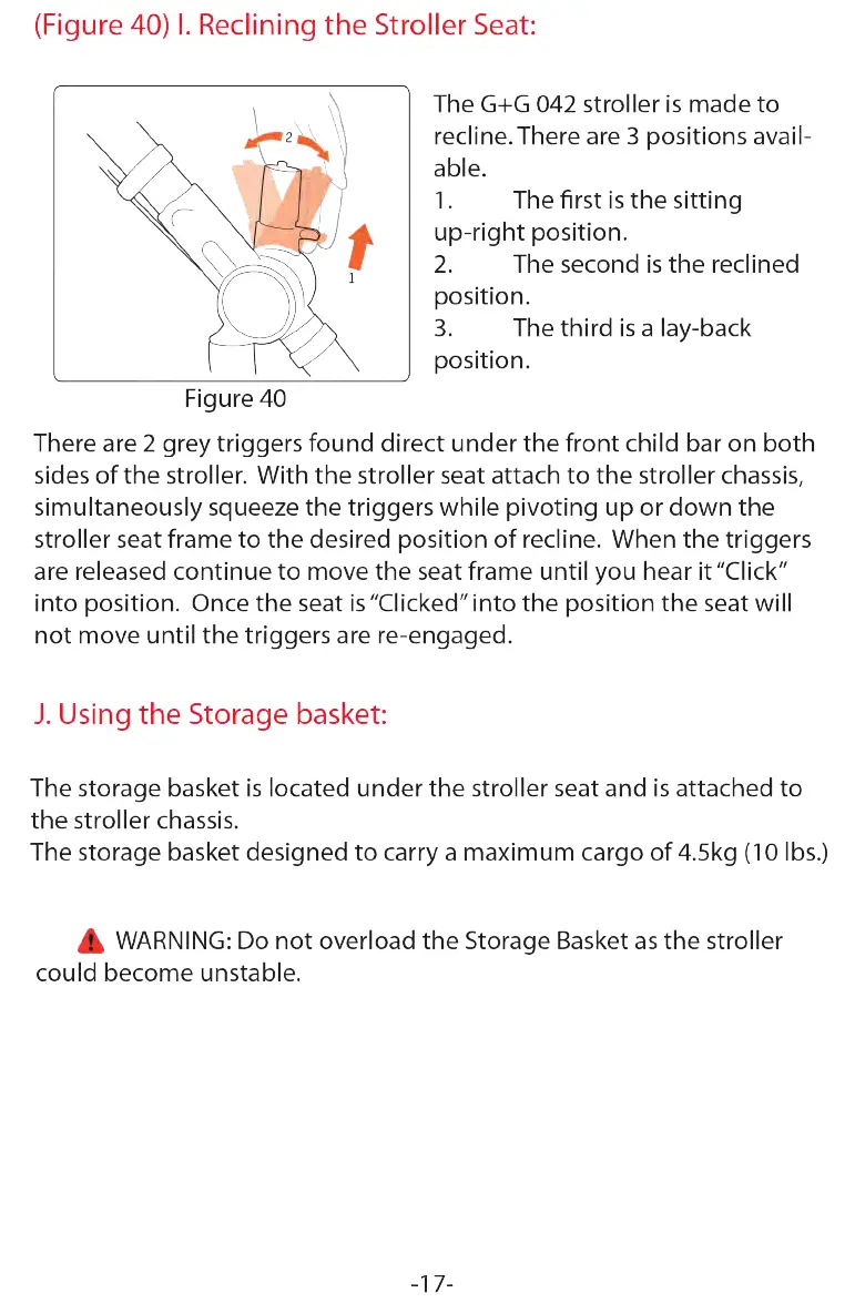 Guzzie+Guss G+G 042 - Reclining the Stroller Seat; Using the Storage Basket