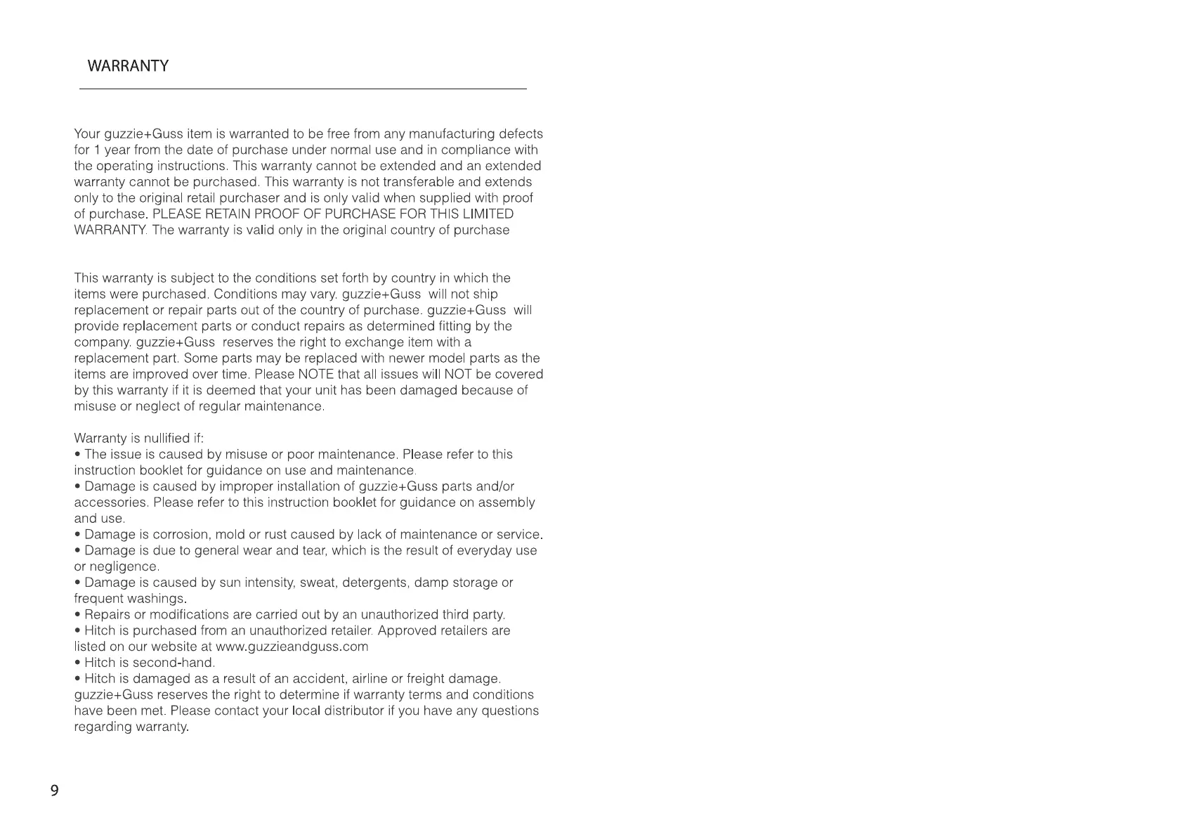 Guzzie+Guss Hitch - Warranty Information