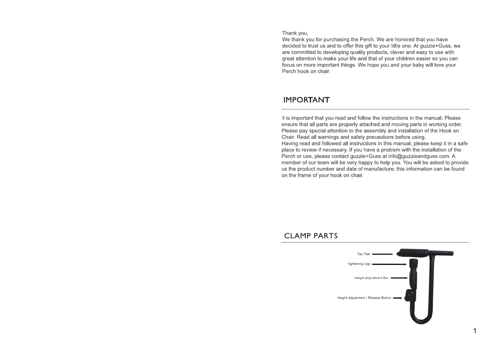 Guzzie+Guss Perch - Important Information and Product Overview; Clamp Parts Identification