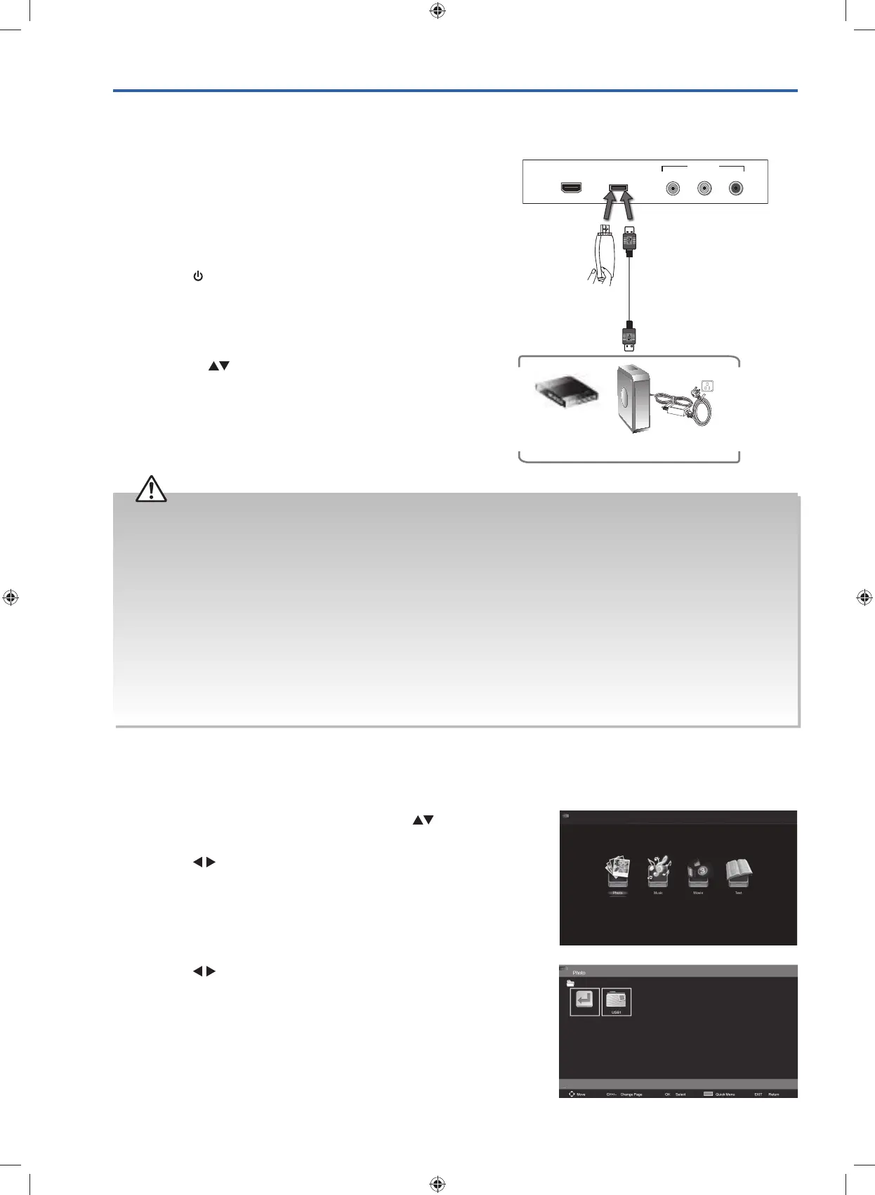 • The TV screen will be blank temporarily as it will take time to start up and stabilise the connected hard disk. This is