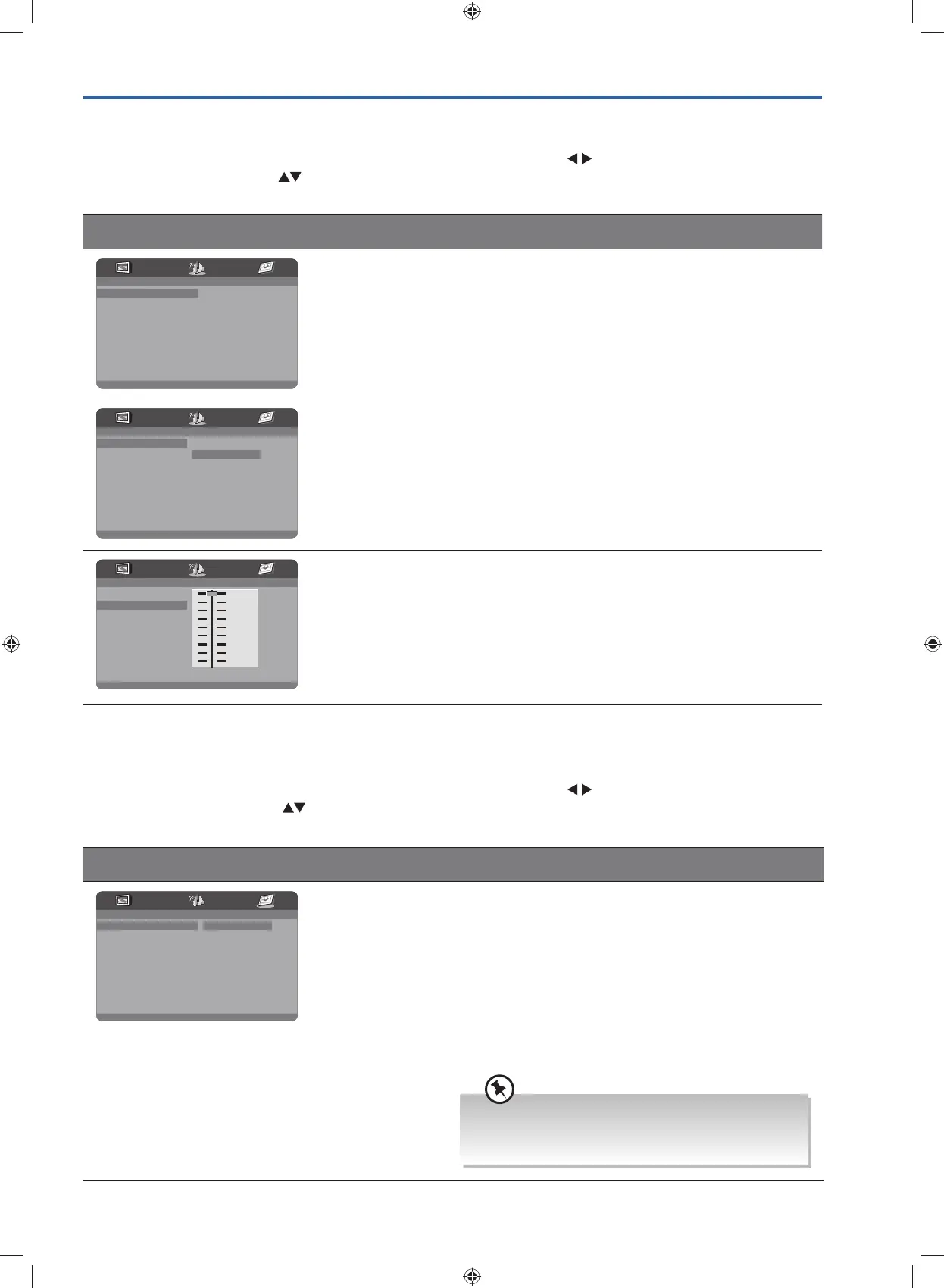 In the DVD mode, press the DVD SETUP button on the remote control. Press the buttons to select the Preference