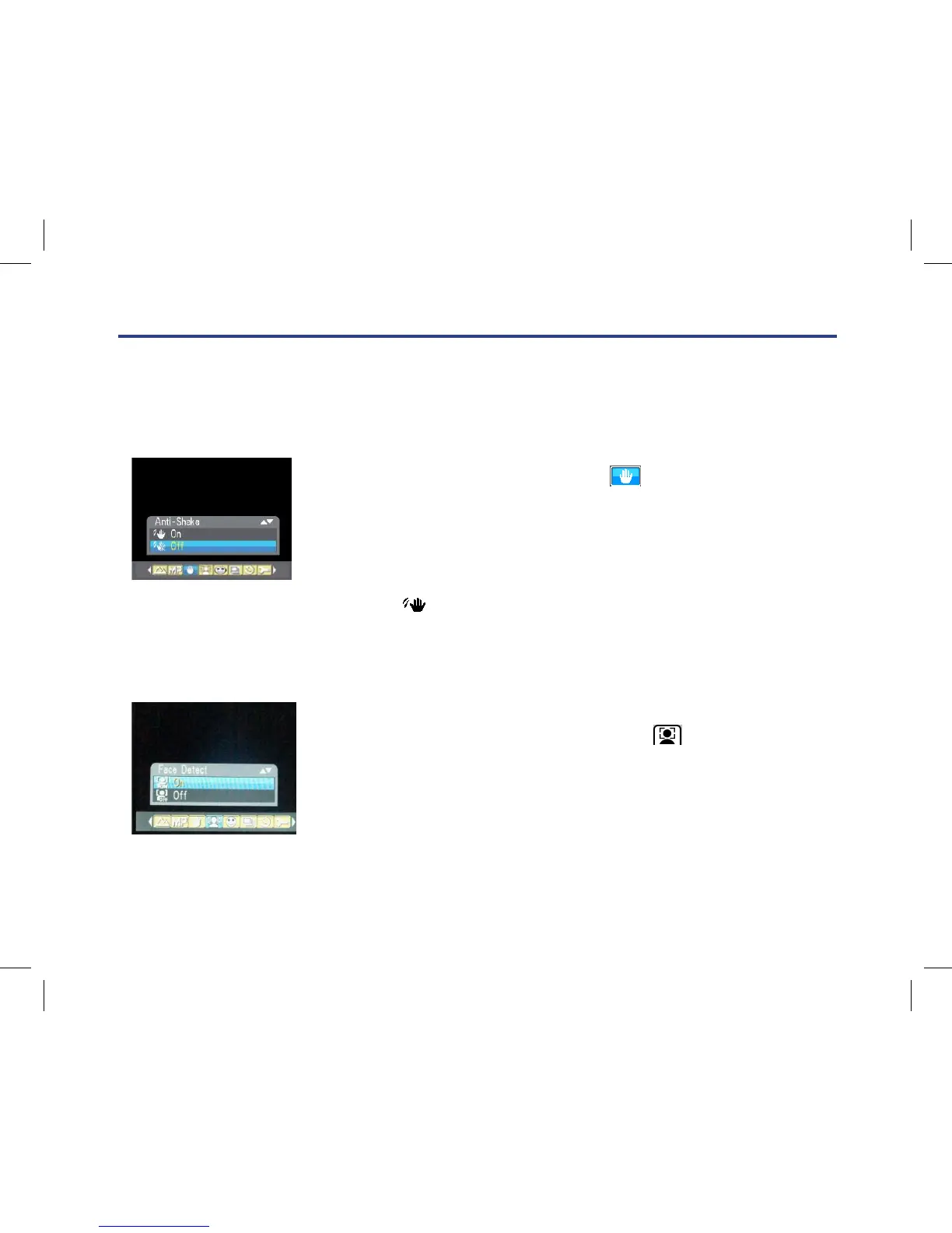 4. Press the MENU button to conrm, the Face Detect icon selected will