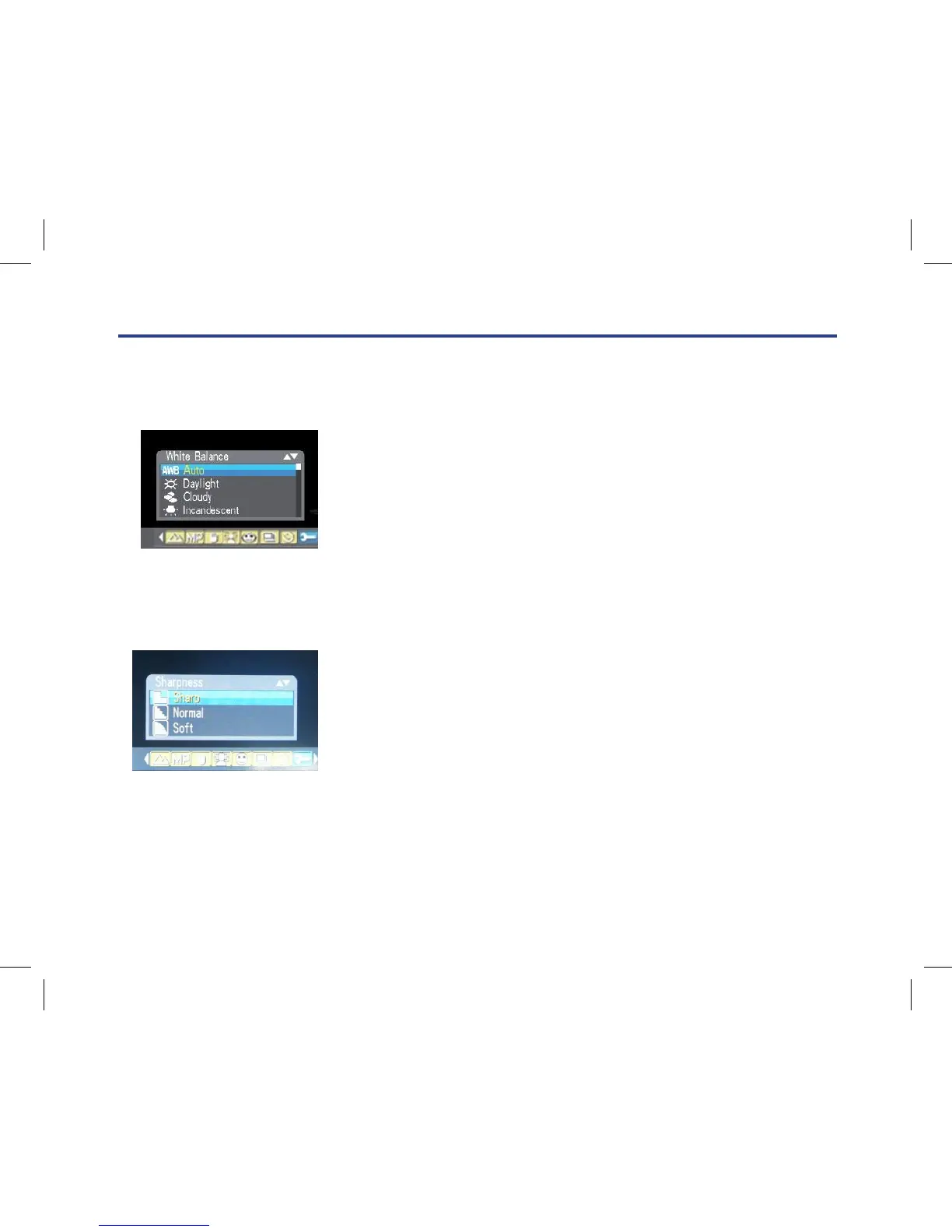 3. Press Up/Down button to select a sharpness value.