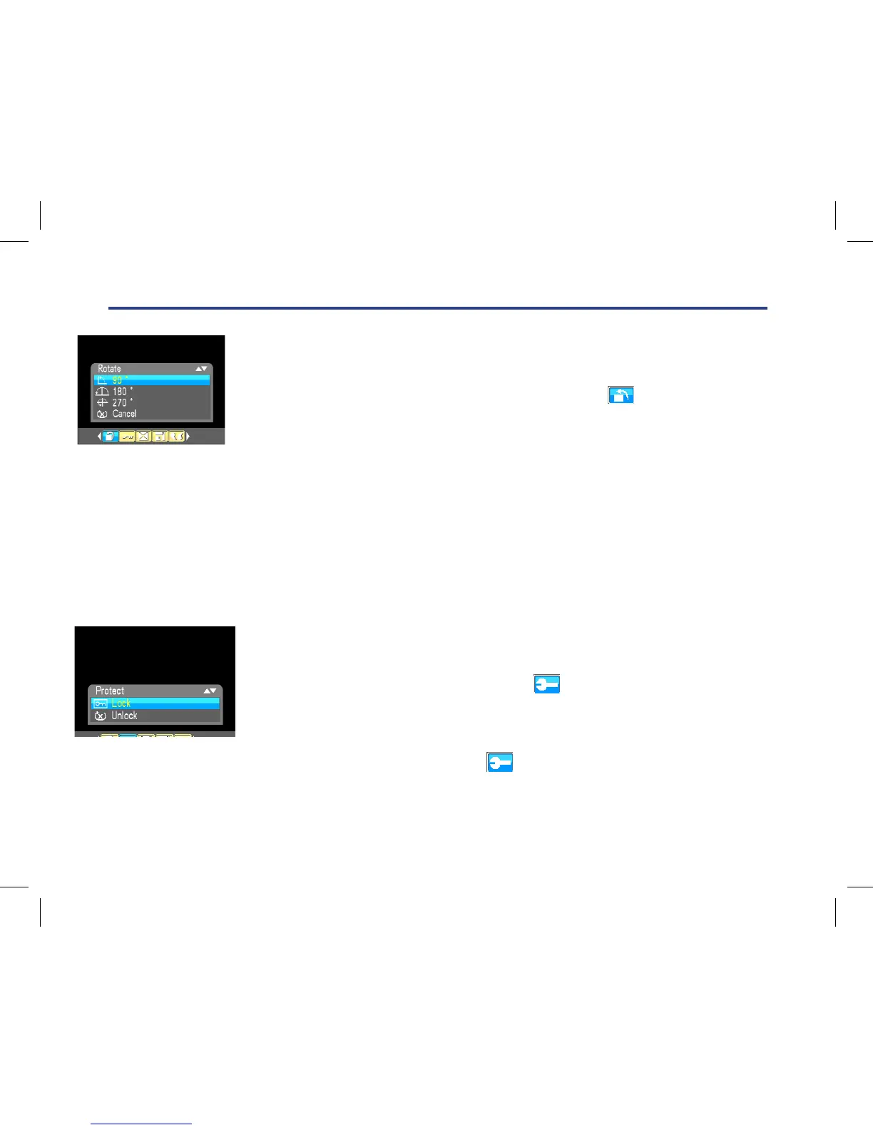 5. If you select Lock, a lock icon will appear on the top of the LCD for the photo or video selected.