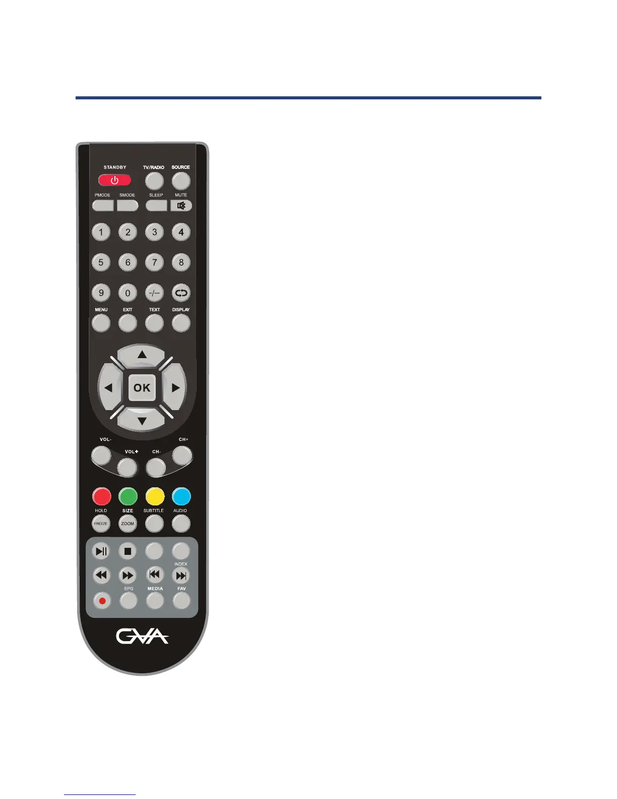 TEXT: Press to switch between TV and Teletext mode.