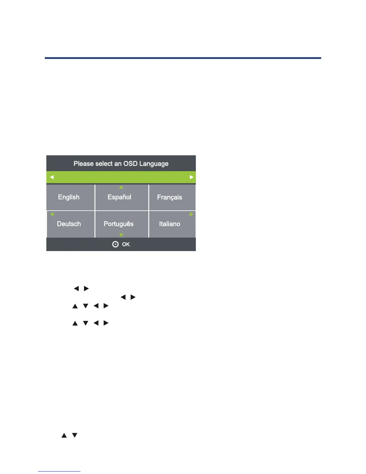 - Use the / / / buttons to select the language and then use the OK button to go to