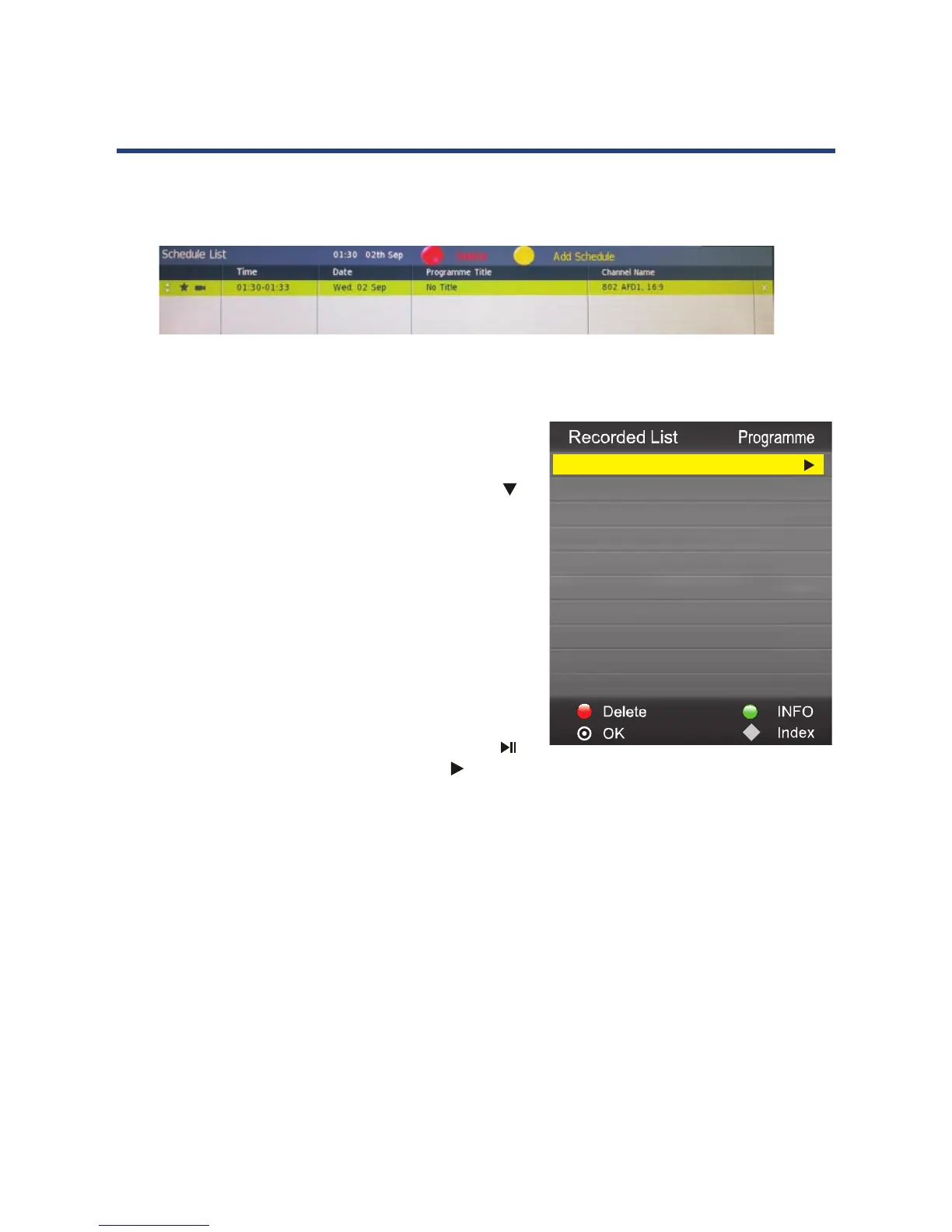 5. Press the “EPG” button then press the “YELLOW” to display the Schedule List.