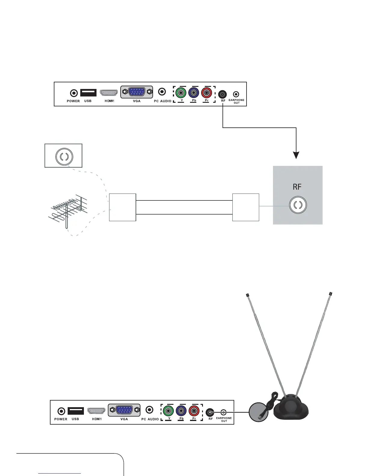 Make sure to connect the coaxial cable to the analog/digital input of the TV.
