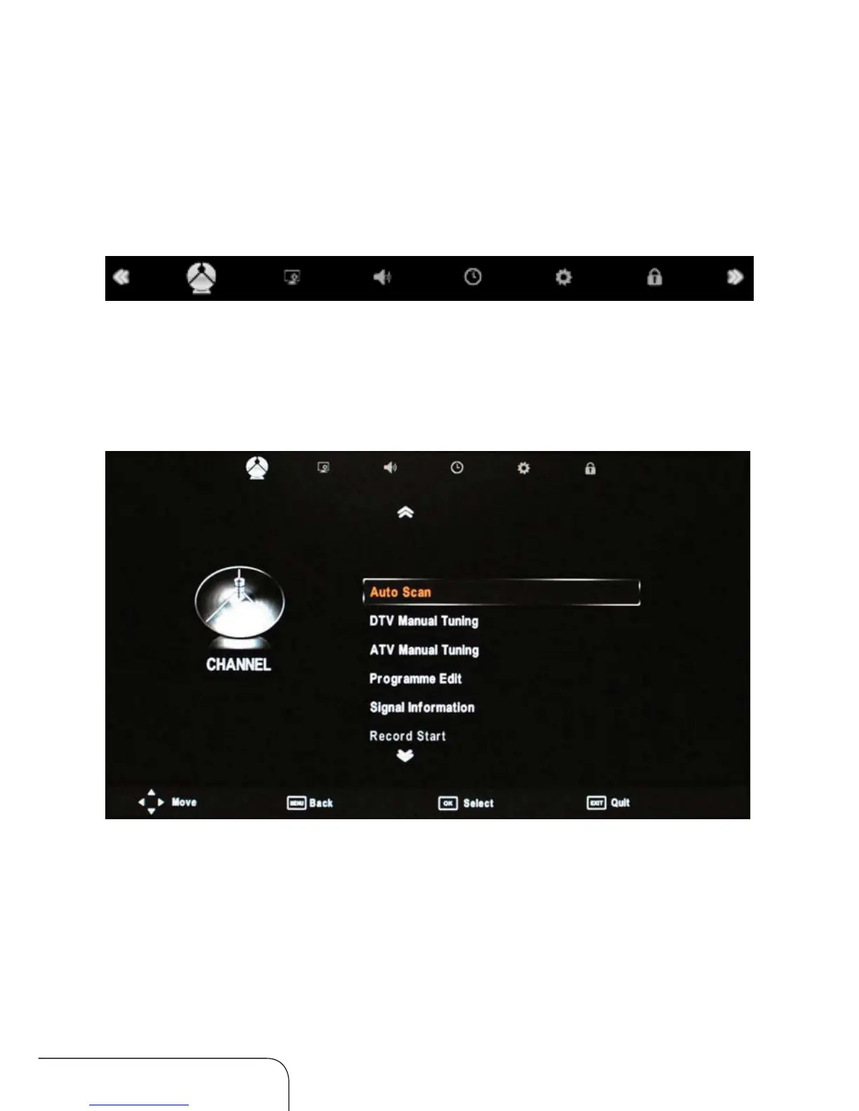 NOTE: You can only select the Channel menu in ATV/DTV mode.