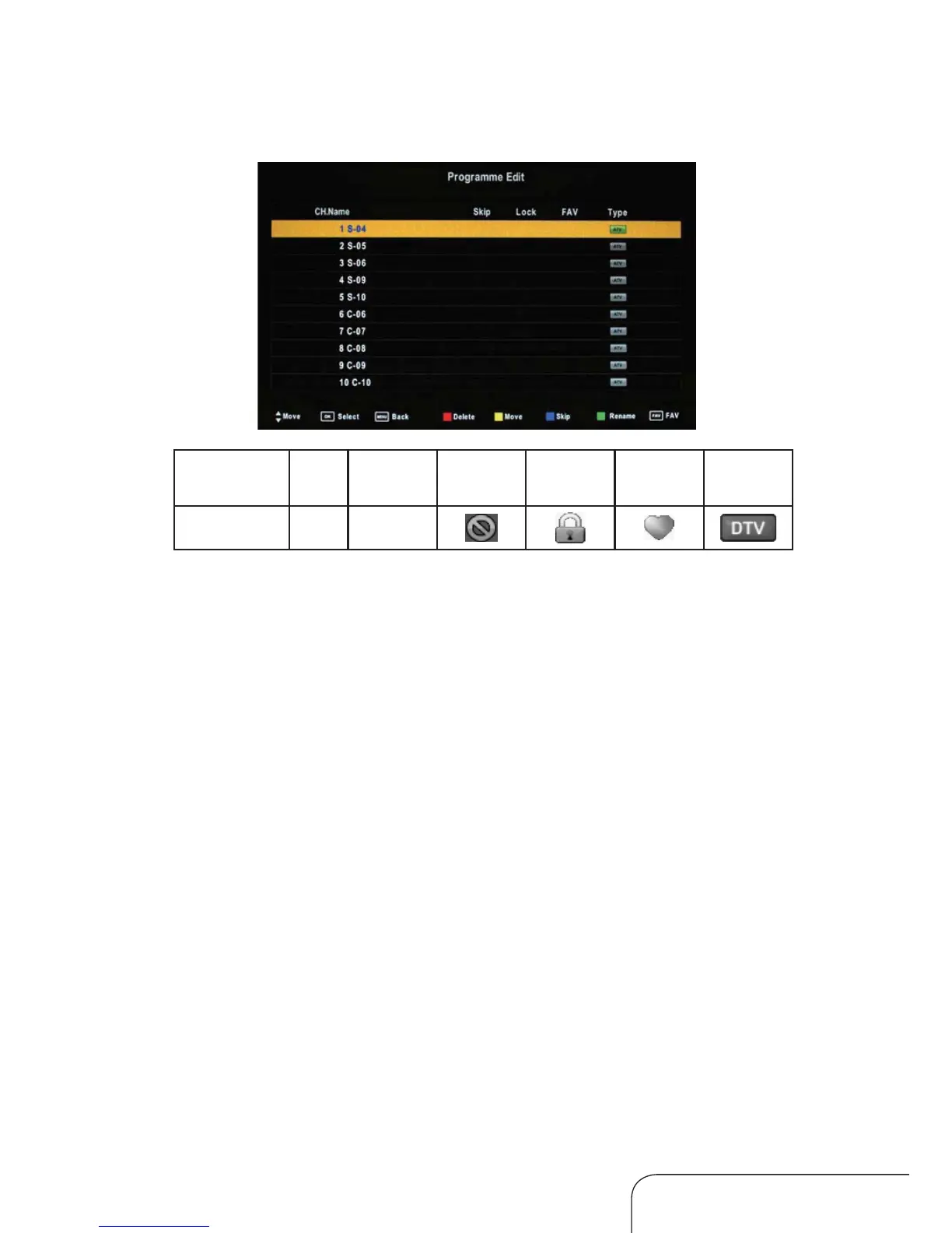 channels, including Delete, Move, Rename, Skip, Lock and Favourite.