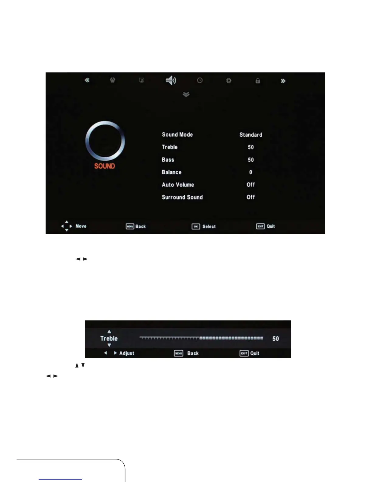 NOTE: You can select treble, bass, balance. To adjust the setting, change the