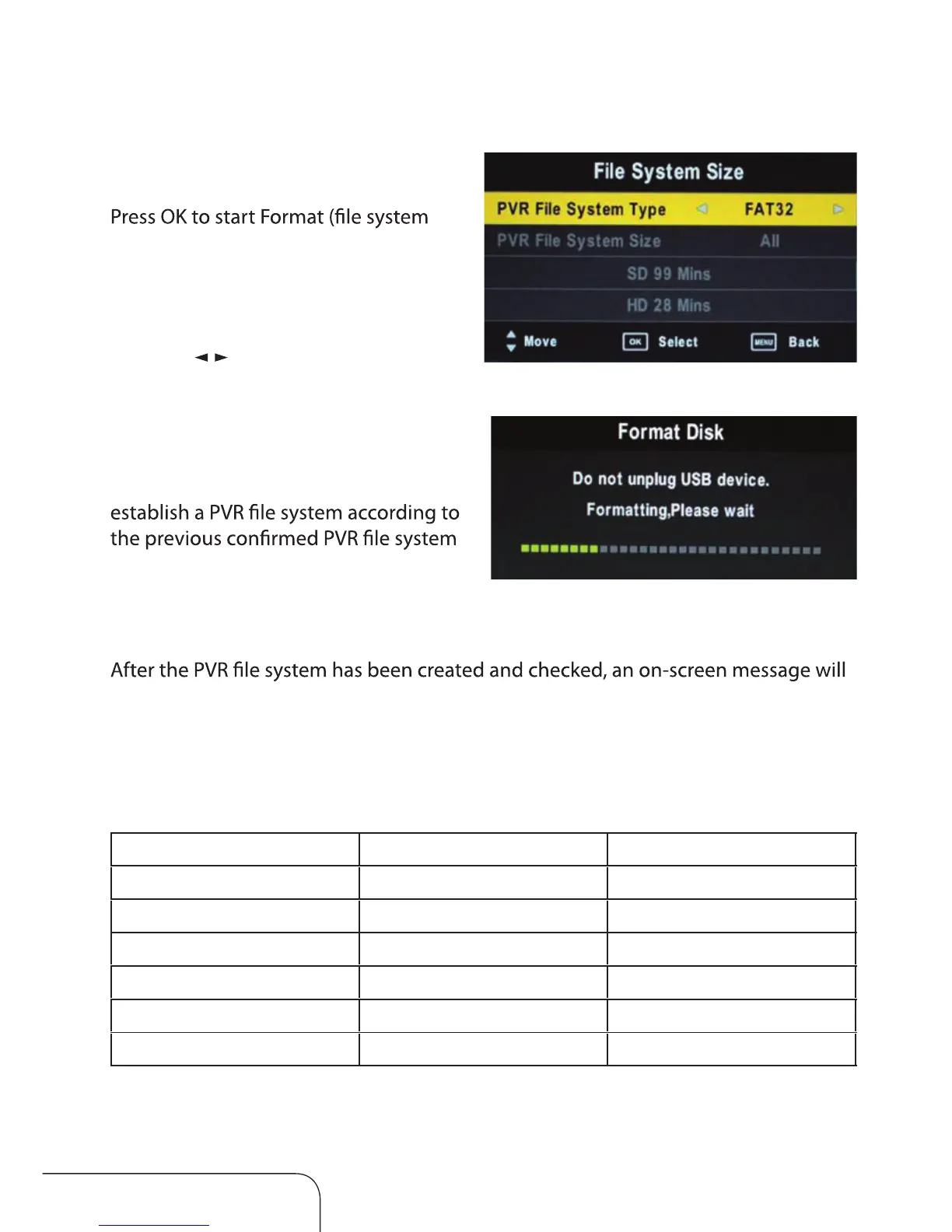 the USB device. The Format Disk screen