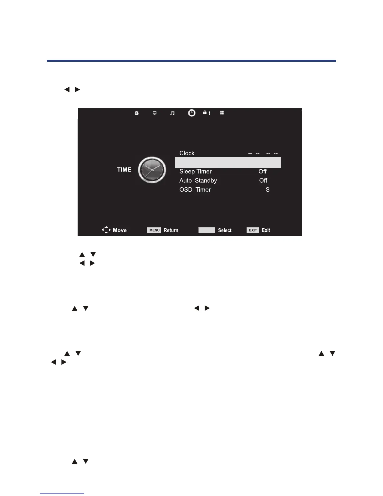 1. Press / button to select the option that you want to adjust in the TIME menu.