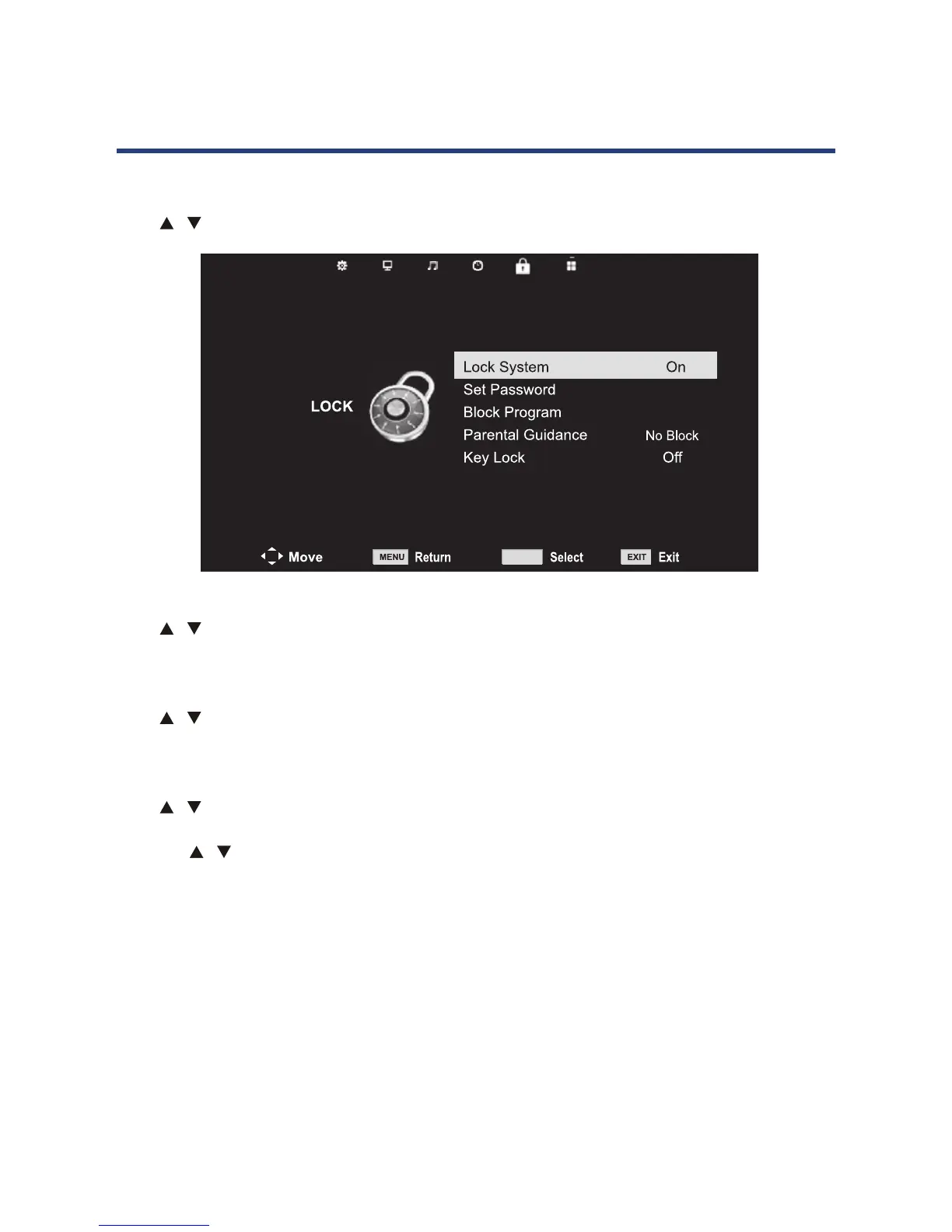 NOTE: If you forget your password, input: 4711. This is the master password for TV